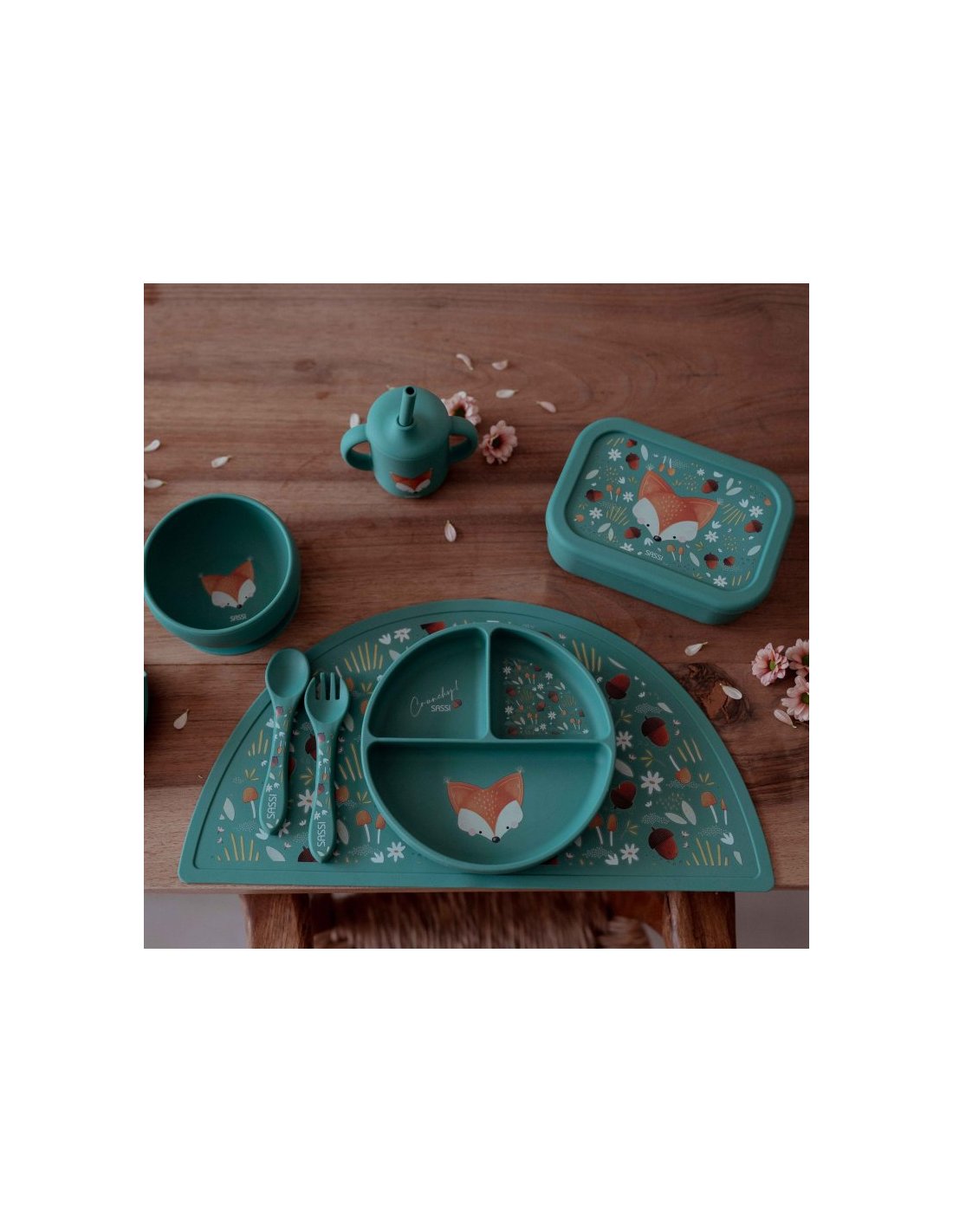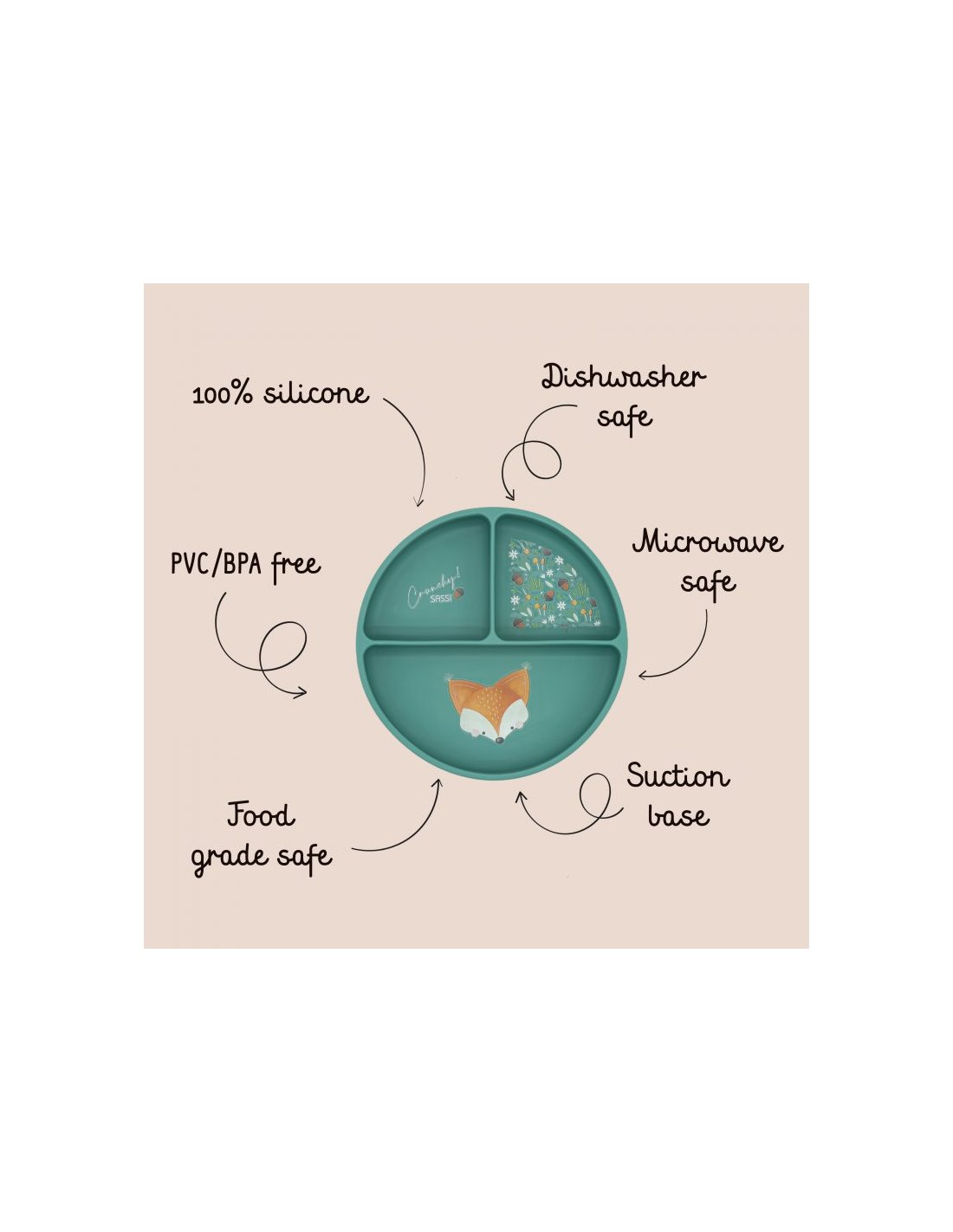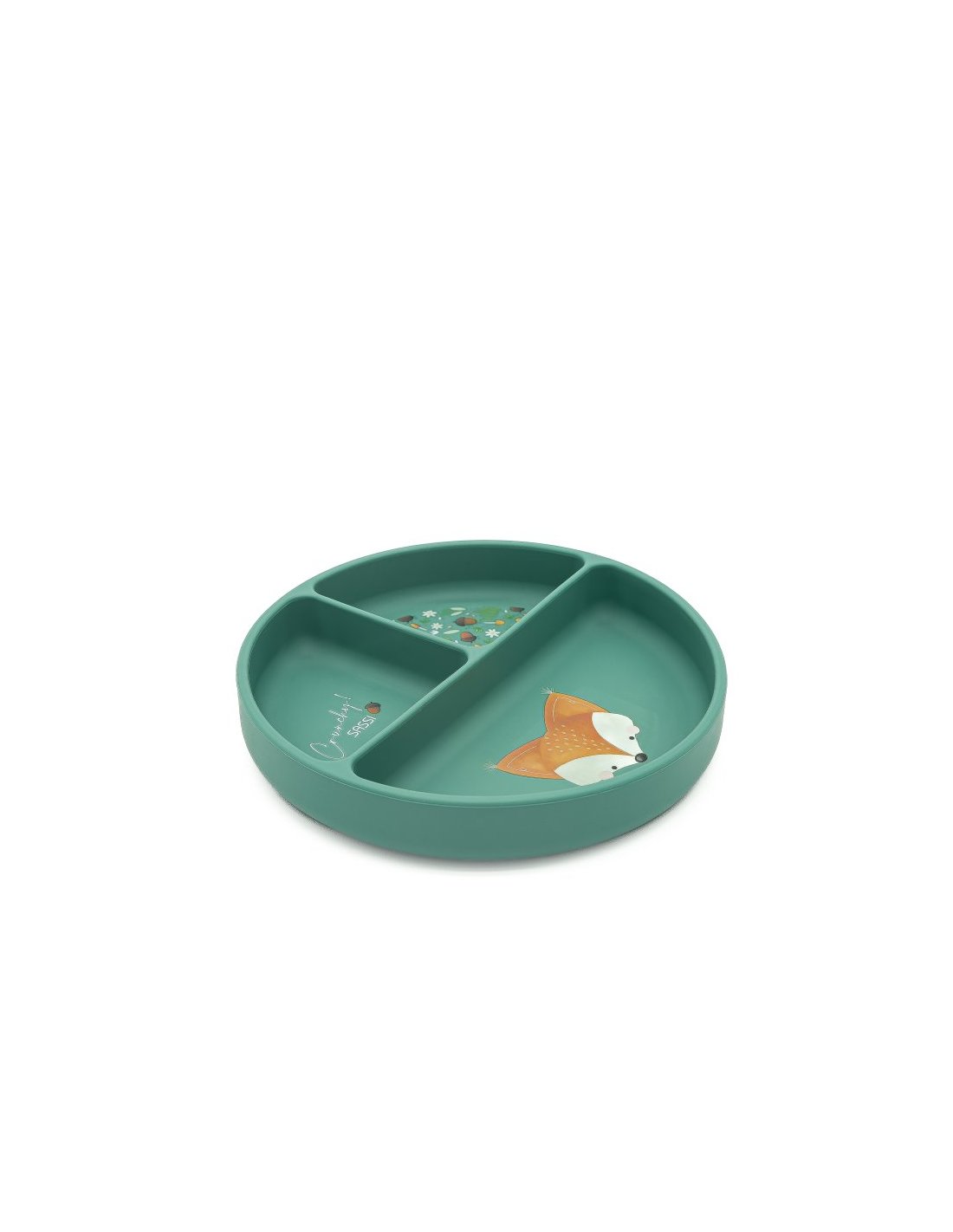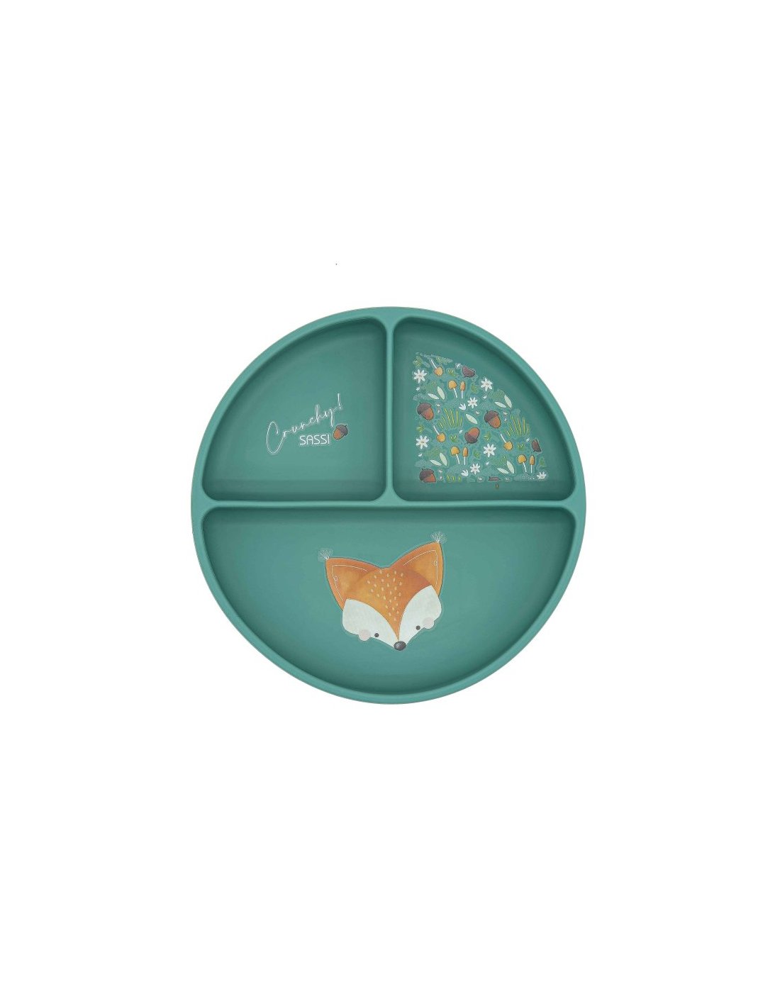Assiette en silicone compartimentée avec ventouse - Crunchy le renard - Sassi