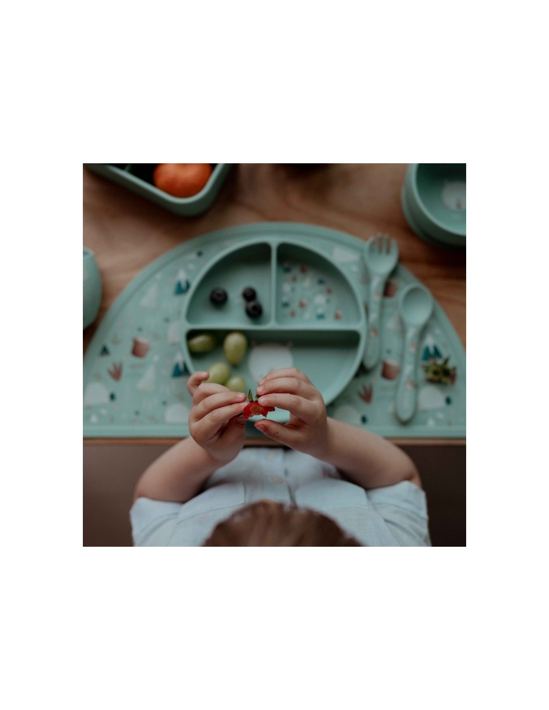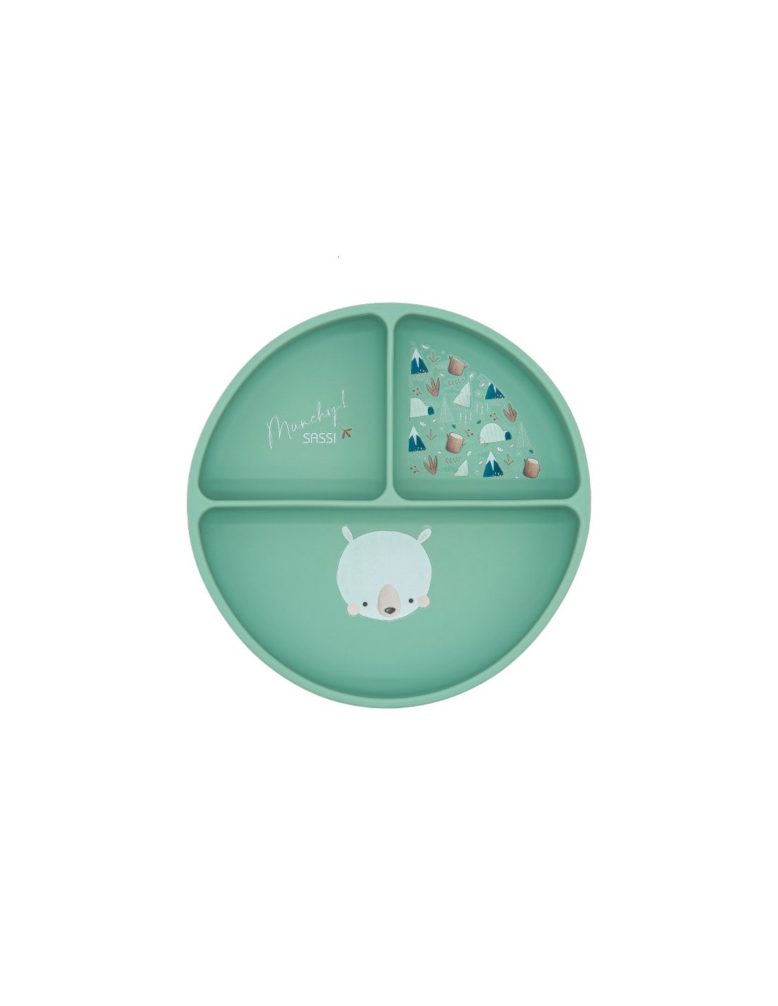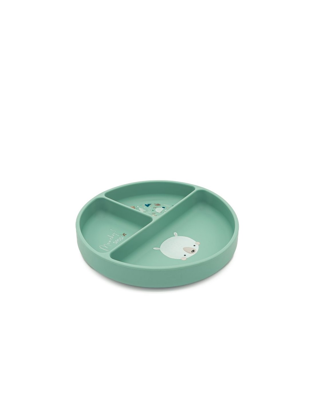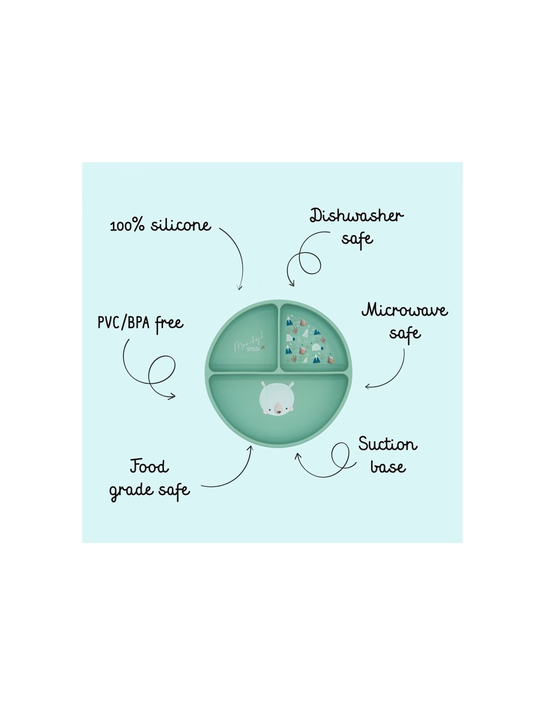 Réalisé en silicone alimentaire, l'assiette est lavable au lave-vaisselle. Elle est également doté d'une ventouse pour garantir la sécurité pendant le repas de l'enfant et convient au four à micro-ondes.