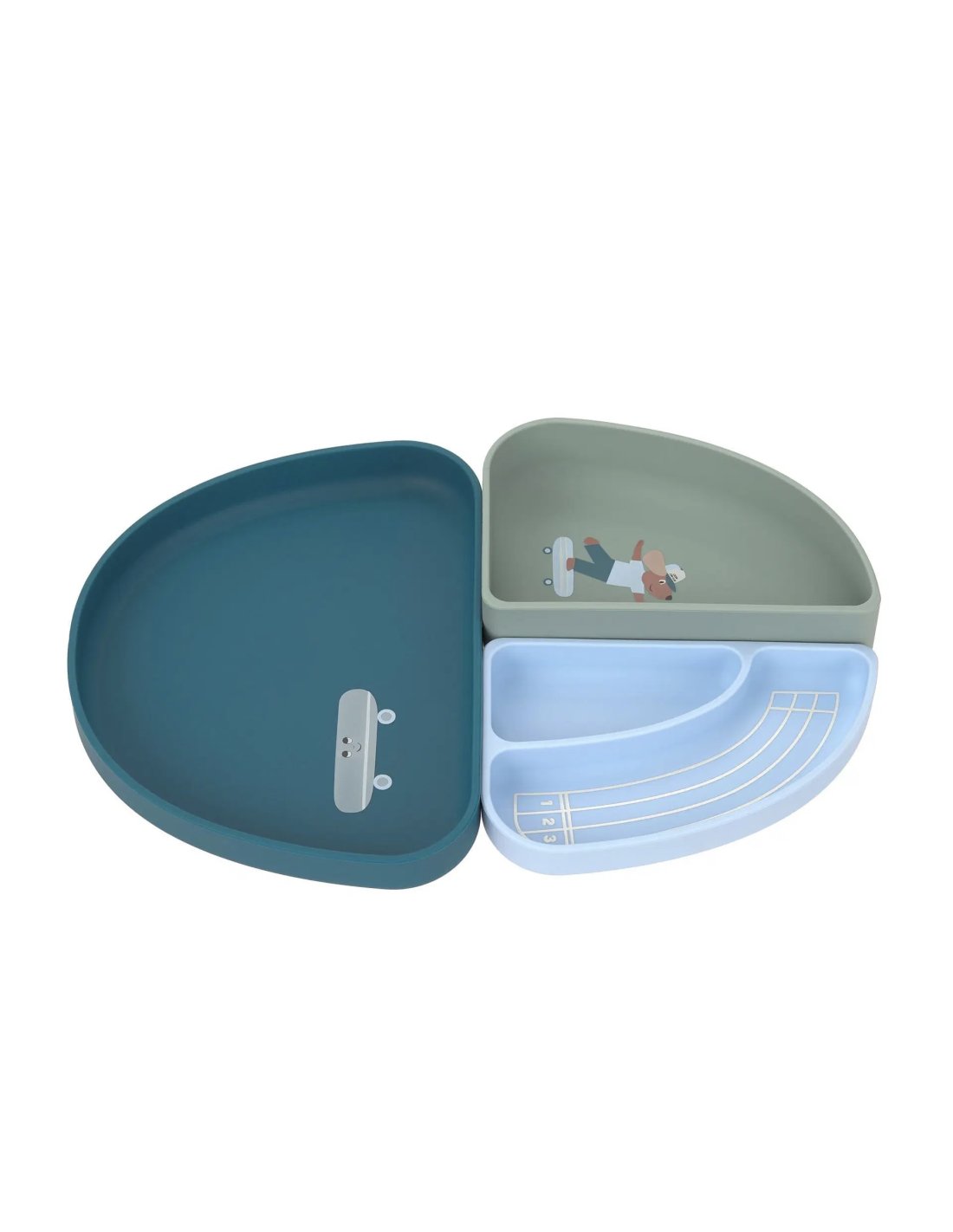 Ce lot d'assiettes repas LÄSSIG en bleu en silicone propose trois bols polyvalents. Flexible, résistant et peu encombrant – parfait pour les petits mangeurs débutants dès 6 mois. Passe au lave-vaisselle et au micro-ondes.