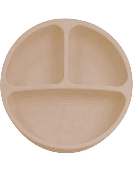Assiette en silicone avec ventouse antidérapante. Avec ses 3 compartiments, elle permet de séparer les aliments et d'accompagner au mieux les enfants dans l'apprentissage des repas.