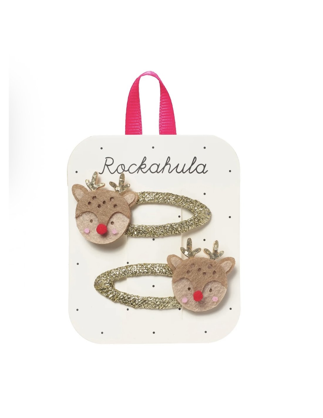 Nos adorables petites barrettes rennes sont l'accessoire parfait pour compléter n'importe quelle tenue de Noël ! Avec leurs bois dorés pailletés, leur nez en pompon rouge vif et leur pince à cheveux recouverte d'un ruban doré, elles sont idéales pour les fêtes de fin d'année ! Ne convient pas aux enfants de moins de 36 mois en raison de la présence de petites pièces.