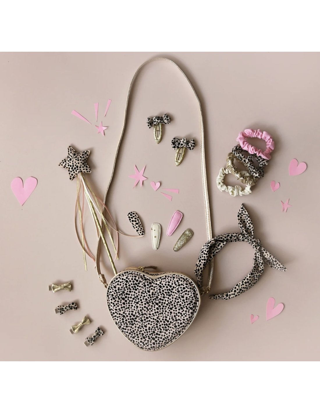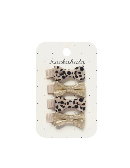 Ce lot de quatre mini barrettes à nœud est absolument irrésistible ! Deux barrettes sont confectionnées dans notre magnifique tissu imprimé léopard et deux dans un tissu doré scintillant. L'accessoire parfait pour toutes les petites amoureuses des léopards ! Chaque barrette est recouverte d'un ruban gros-grain doux. Chouchous, bandeau, barrette en tissu, sac, baguette magique et cache-oreilles assortis également disponibles. Ne convient pas aux enfants de moins de 36 mois en raison de la présence de petites pièces.