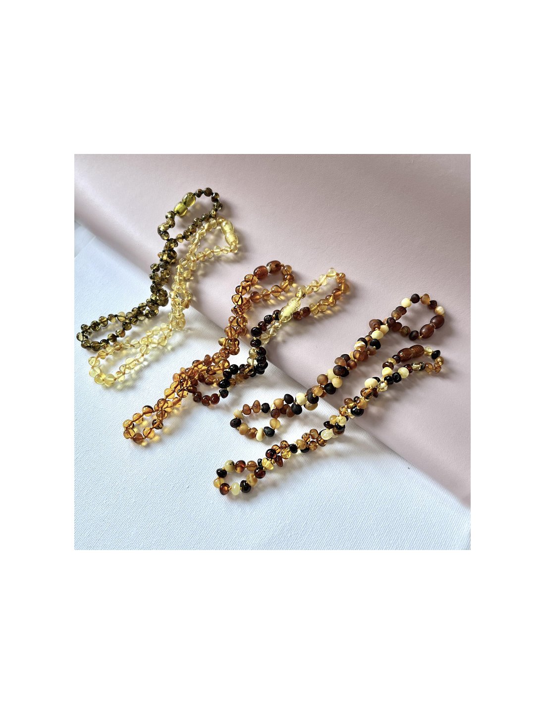 Ce collier pour enfant en ambre, d'une longueur de 32-33 cm, est conçu pour allier esthétique et sécurité. Le fermoir clip assure une fermeture fiable tout en étant facile à manipuler, garantissant ainsi une utilisation sans tracas pour les parents. La finition polie des pierres baroques d'ambre de la Mer Baltique offre un éclat naturel et une douceur au toucher, rendant ce bijou aussi agréable à porter qu'à regarder.