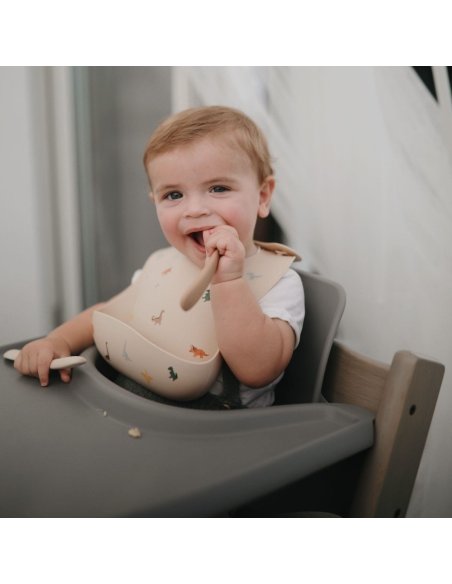 Un bavoir en silicone permet de garder votre petit bout de chou et les alentours propres :