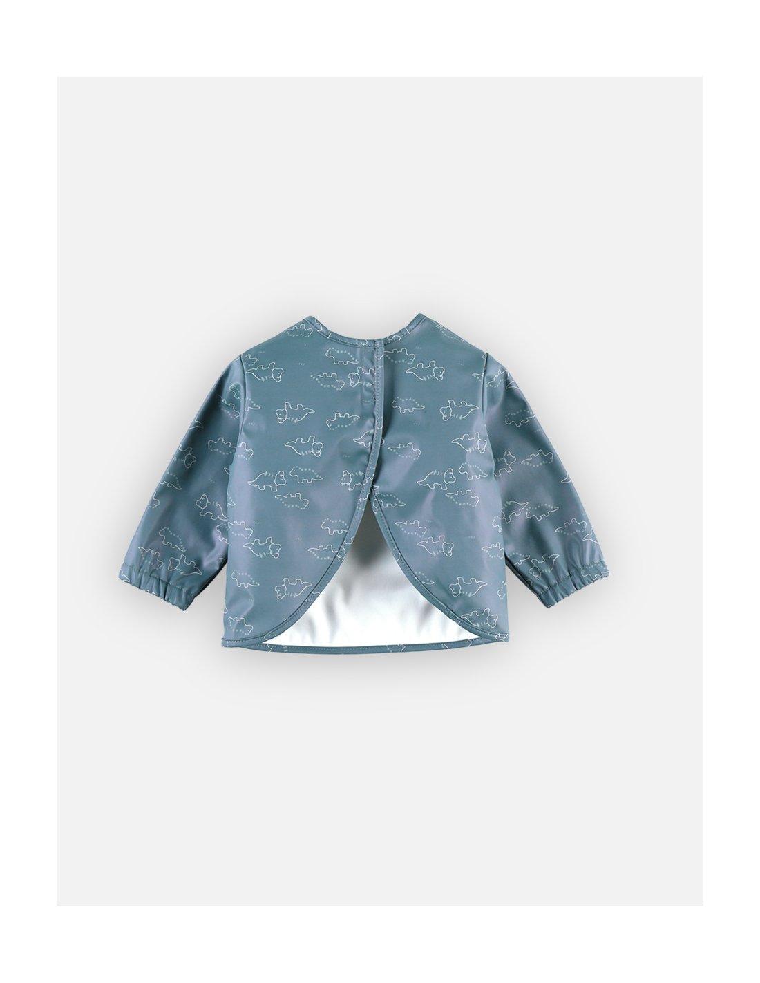 Un joli tablier à manches pour bébé artiste (6M-2 ans) bleu en toile cirée déperlante imprimé dinosaures! Votre enfant pourra s’amuser et jouer tout en ne salissant pas ses vêtements.Il s’attache à l’aide de velcro à l’arrière de la nuque pour que papa ou maman ait facile à le fermer. Il est certifié Oeko-tex, ce qui signifie que la production maintient ses responsabilités envers l’homme et la nature en préservant leur bien-être et leur harmonie.