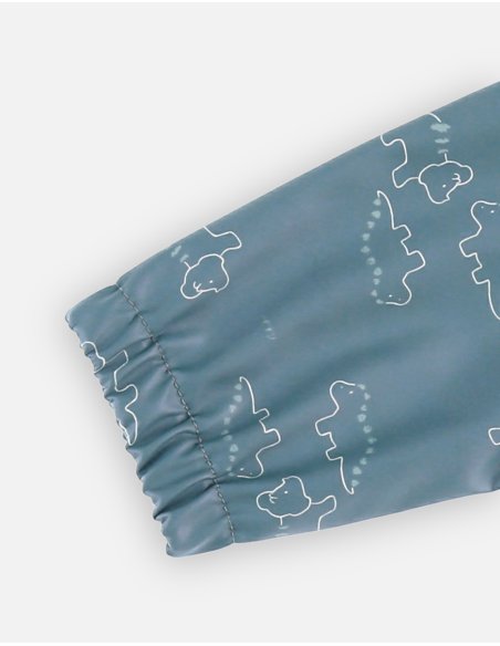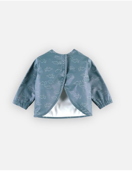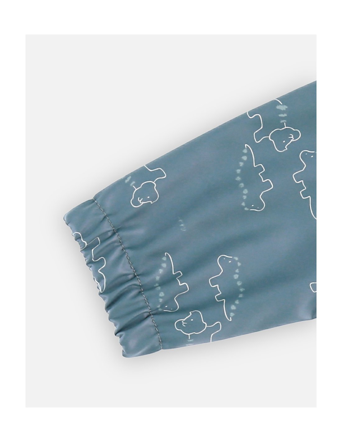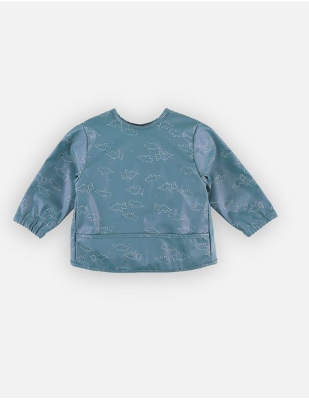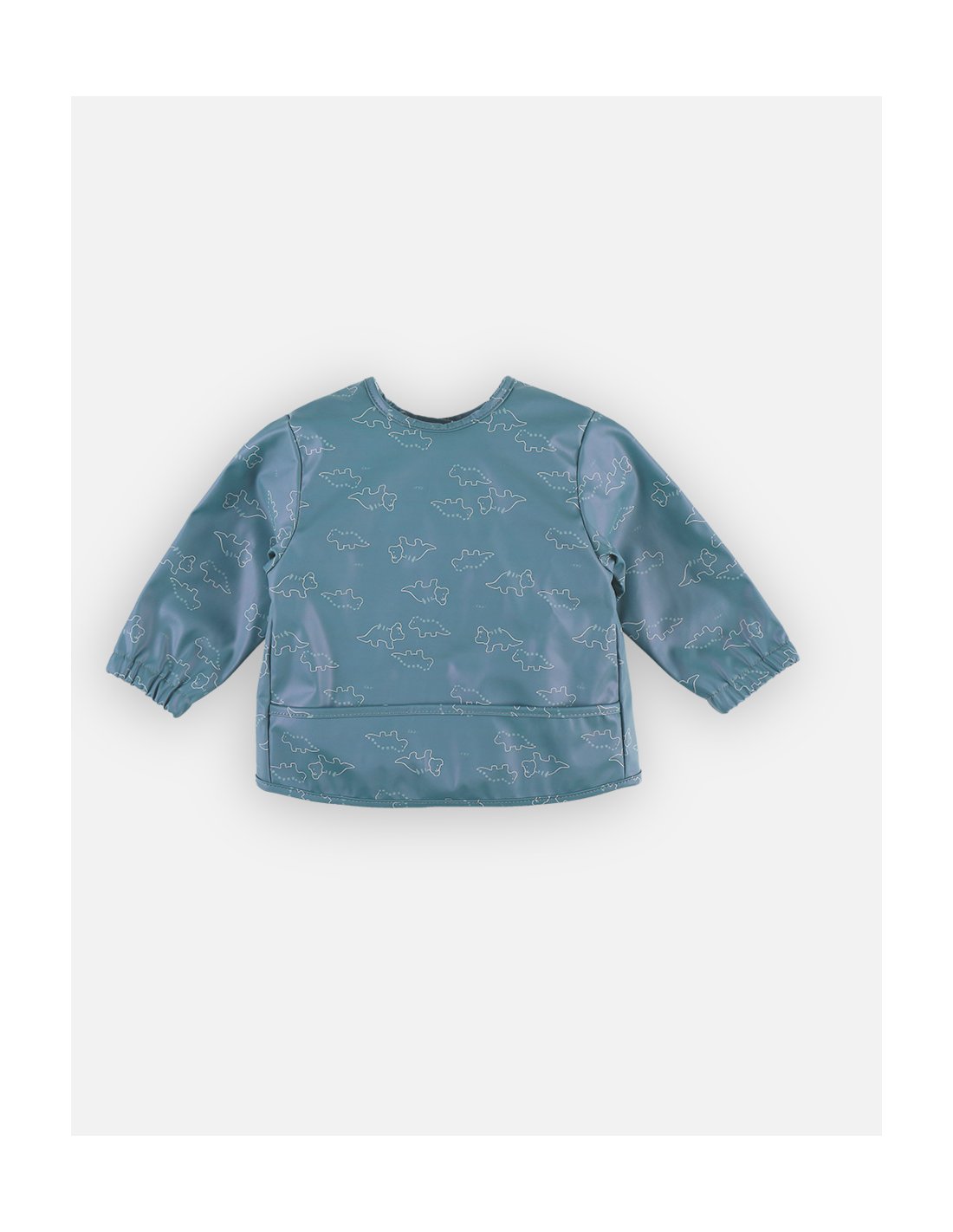 Un joli tablier à manches pour bébé artiste (6M-2 ans) bleu en toile cirée déperlante imprimé dinosaures! Votre enfant pourra s’amuser et jouer tout en ne salissant pas ses vêtements.Il s’attache à l’aide de velcro à l’arrière de la nuque pour que papa ou maman ait facile à le fermer. Il est certifié Oeko-tex, ce qui signifie que la production maintient ses responsabilités envers l’homme et la nature en préservant leur bien-être et leur harmonie.