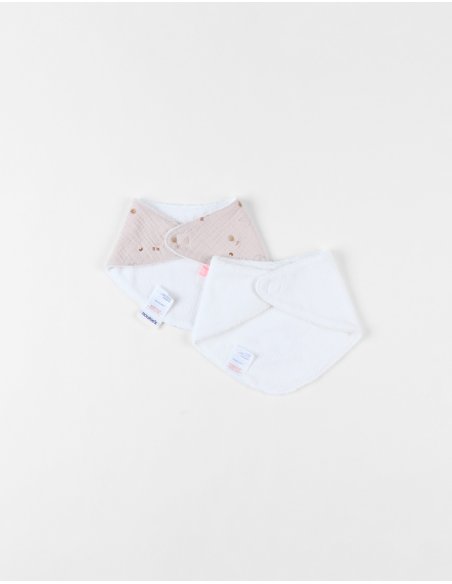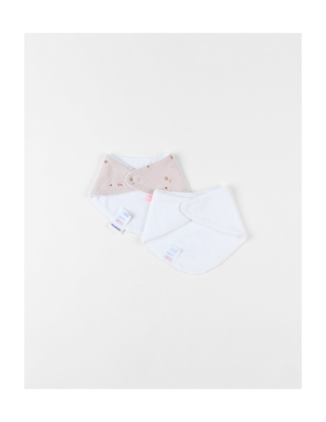 Le set de 2 bandanas, l'un en éponge avec Bali rebrodé, l'autre en mousseline imprimée des Colombes du bonheur, est parfaitement adapté au nouveau-né de 0 à 3 mois de par sa taille mais aussi par l'utilisation d'un scratch ultra doux. Avantages :Sécurité : Les scratchs utilisés par Noukie's sont sélectionnés pour leur douceur et donc sans risque de pincement ou d'irritation autour du cou de bébé. Facilité d'utilisation : Les bavoirs avec scratch sont bien plus faciles à mettre et à enlever que les mini bavoirs avec liens. Ajustement personnalisé : Les scratchs permettent un ajustement parfait autour du cou de bébé, assurant un bon maintien du bandana. Durabilité : Plus résistants que les liens en tissu, les scratchs supportent mieux les lavages répétés et l'usure quotidienne.