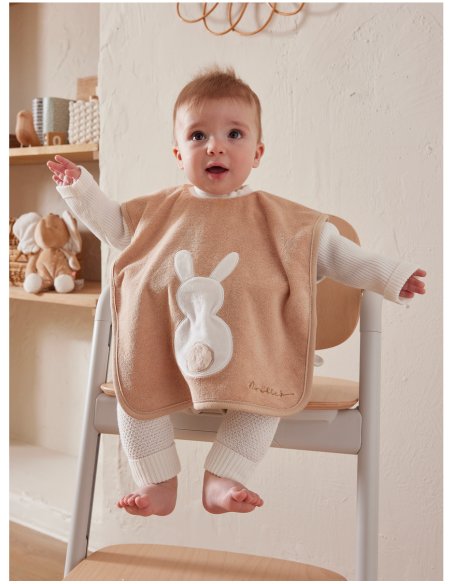 En ajoutant un squeaker à ce grand bavoir "Moka", on ajoute une dimension ludique à l'expérience de repas de bébé. Avantages :Protection maximale: Ils couvrent une grande partie du haut du corps de bébé, offrant une protection étendue contre les taches pendant les repas.Facilité d'utilisation: Bien plus simples que les liens à nouer, ils sont faciles à mettre et à enlever, ce qui est pratique pour les bébés agités.