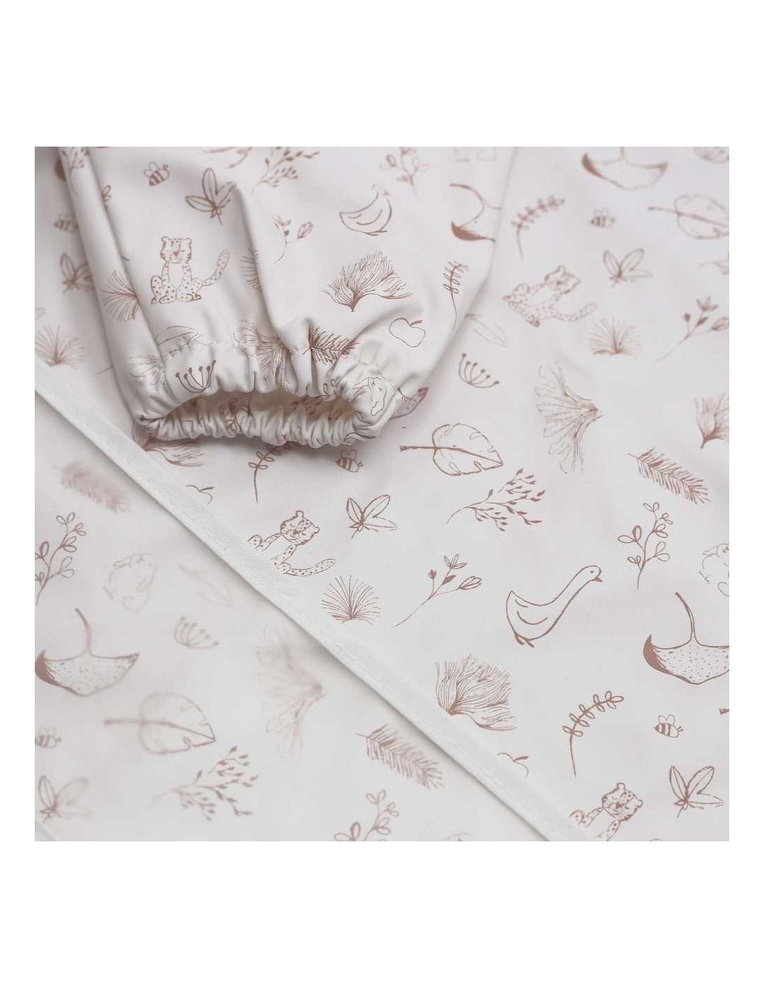 Le bavoir tablier à manche longue est pensé pour les jeunes parents soucieux de garder leur bébé propre tout en favorisant son autonomie lors des repas. Avec ses manches longues et ses poignets élastiques, il offre une protection complète contre les éclaboussures et les taches. Sa matière déperlante empêche les liquides de traverser le tissu, et son récupérateur intégré capte les miettes et les aliments tombés.