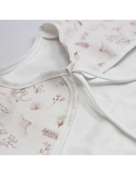 Facile à enfiler, ce bavoir se ferme dans le dos avec un lacet ajustable, garantissant un maintien sûr et confortable. Les motifs discrets apportent une touche élégante et douce, adaptée aussi bien aux petits garçons qu'aux petites filles. Conçu pour les enfants dès 6 mois, il accompagne parfaitement les premières découvertes gustatives lors de la diversification alimentaire.