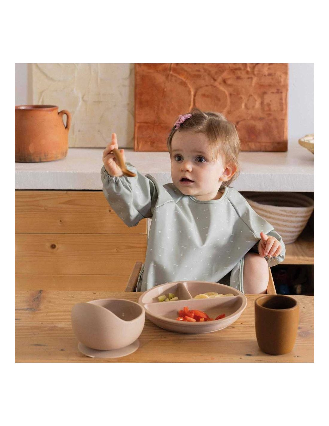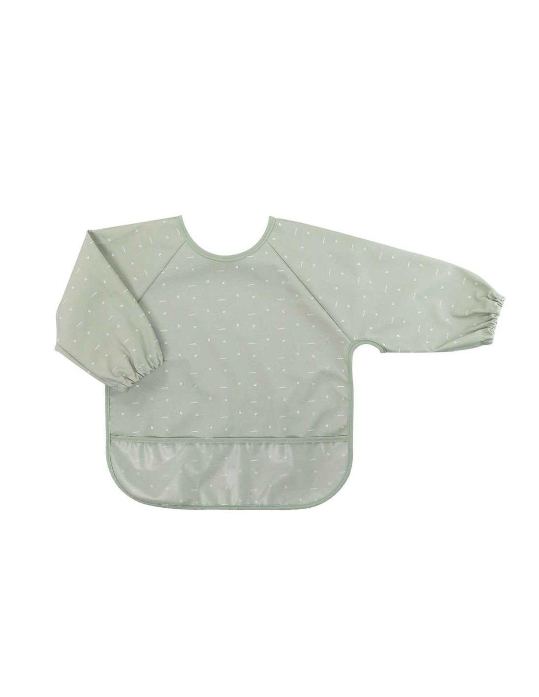 Le bavoir tablier à manche longue est pensé pour les jeunes parents soucieux de garder leur bébé propre tout en favorisant son autonomie lors des repas. Avec ses manches longues et ses poignets élastiques, il offre une protection complète contre les éclaboussures et les taches. Sa matière déperlante empêche les liquides de traverser le tissu, et son récupérateur intégré capte les miettes et les aliments tombés.