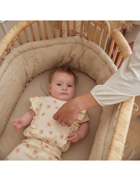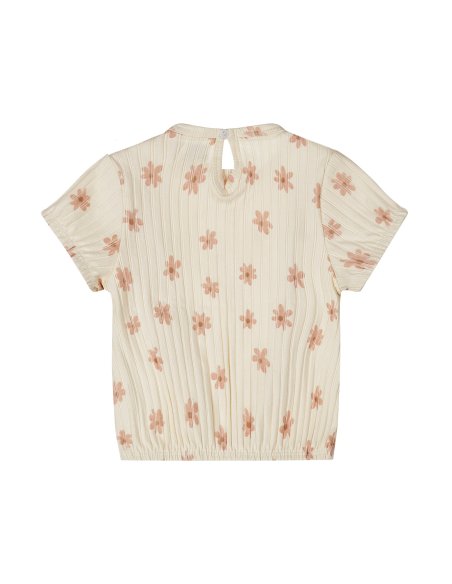Tshirt en coton côtelé à imprimé floral sur fond écru. Orné de petits volants sur le devant.