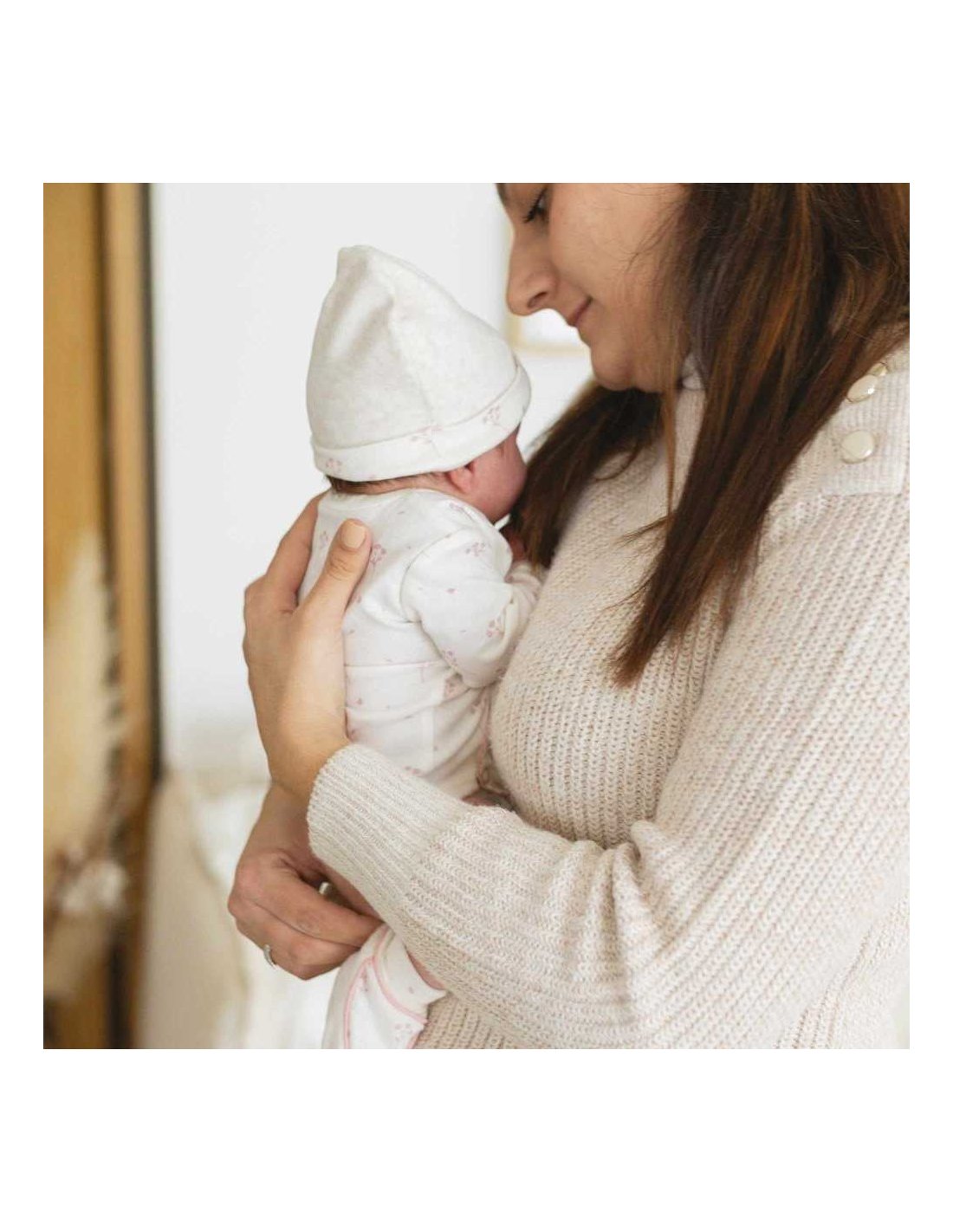Le bonnet, tout mignon, protègera tendrement sa petite tête des courants d’air, tandis que les chaussons et les moufles garderont ses petites extrémités bien au chaud.