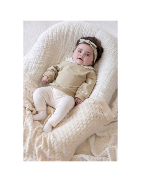 Legging écru avec joli détail broderie à la taille.