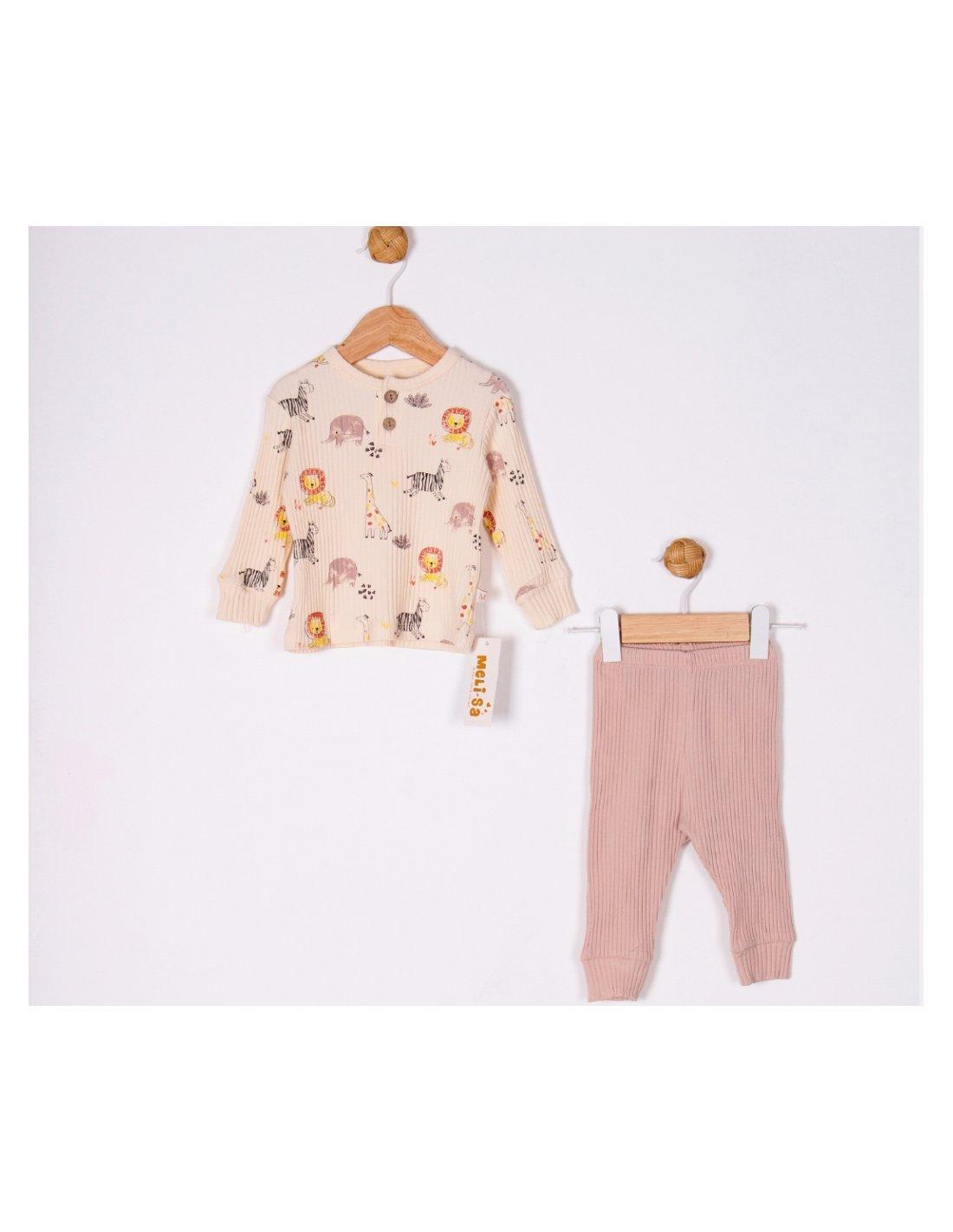 Ensemble 2pièces côtelé coton. Imprimé savane. Tenue mite : peut convenir à la fois pour petit garçon et pour petite fille.