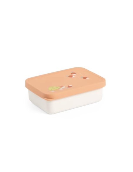 Jolie boîte à goûter en inox et couvercle en silicone aux couleurs de la collection Les 3 petits lapins. Parfaitement hérmétique elle se glissera facilement dans les sacs des tout-petits.