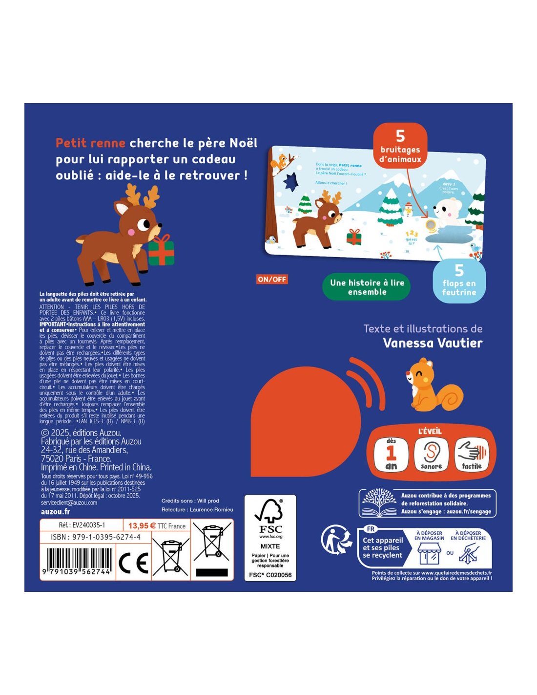 Un livre tout-carton adapté aux tout-petits, avec des puces sonores, une fabrication solide, et des flaps en feutrine à soulever !