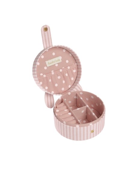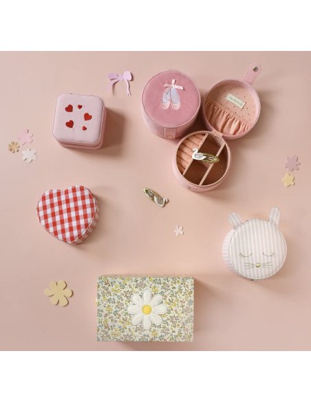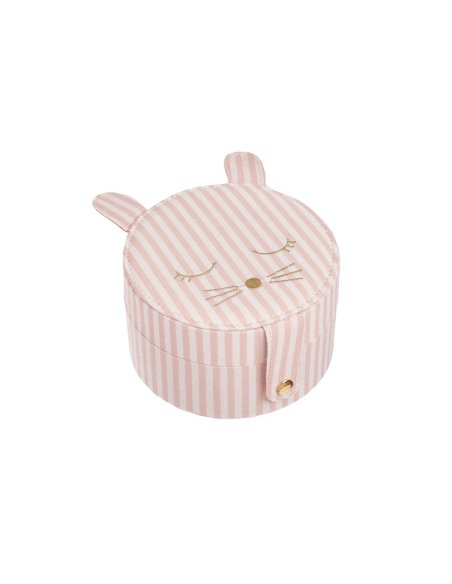 Sautez comme un lapin avec notre adorable boîte à bijoux rayée ! Cette boîte en forme de lapin est idéale pour ranger vos bijoux Rockahula et vos trésors préférés en toute sécurité ! Ornée d'un visage de lapin brodé en or, de deux oreilles tombantes et confectionnée dans notre magnifique tissu rose rayé, elle s'ouvre sur trois compartiments, une poche plaquée et un emplacement dédié aux boucles d'oreilles et aux bagues. Doublure en tissu à pois.