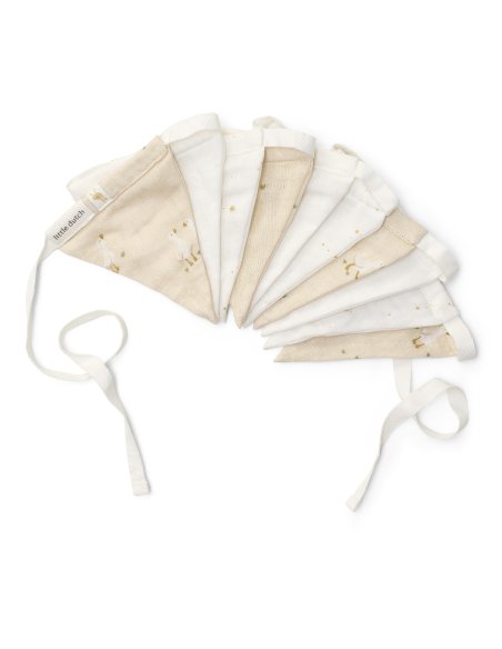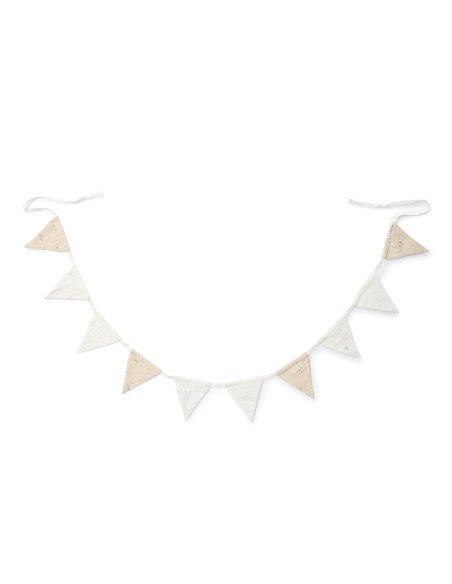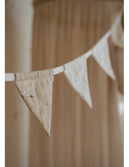 Illuminez la chambre de bébé avec cette jolie guirlande de drapeaux. Qui a dit que les guirlandes étaient réservées aux fêtes ! Elles égayent instantanément une pièce. Sur le mur, autour du ciel de lit, sur une étagère ou pour décorer une tente de jeu.