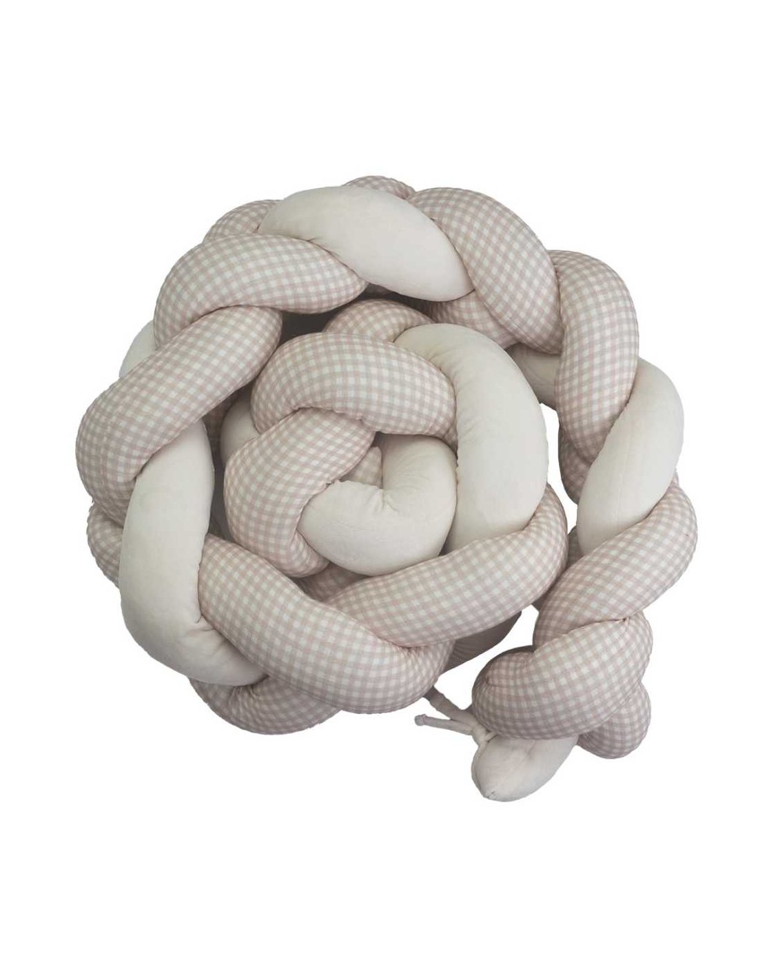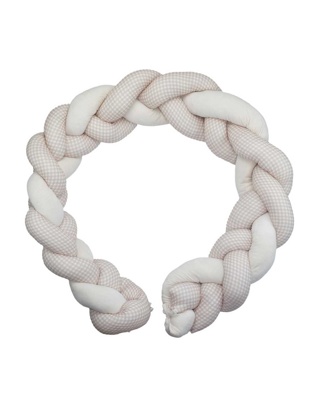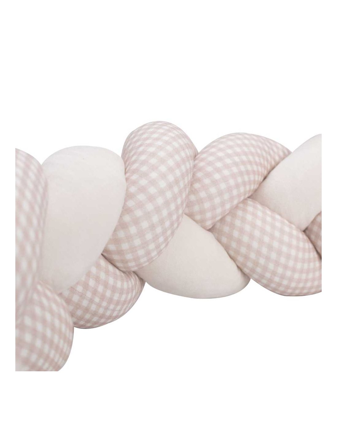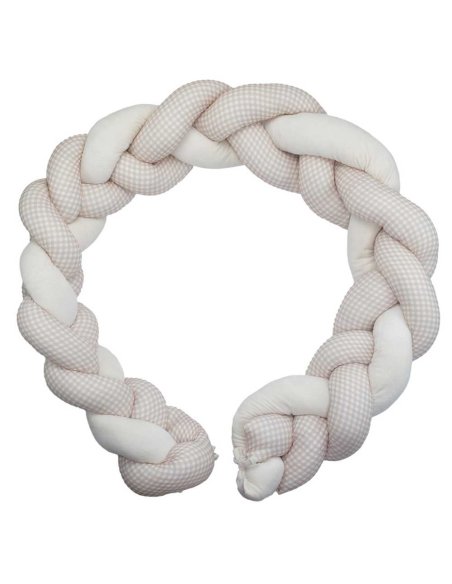 Souple mais suffisamment rembourrée, la tresse est composée de trois brins entremêlés et se fixe facilement grâce à de petits liens cousus aux extrémités. Une fois installée, elle reste bien en place tout en conservant son aspect moelleux et réconfortant. Son motif vichy intemporel s’adapte aussi bien aux chambres classiques qu’aux univers plus modernes. Grâce à sa forme modulable, la tresse peut être déplacée facilement et utilisée de différentes manières selon l’aménagement de la pièce.
