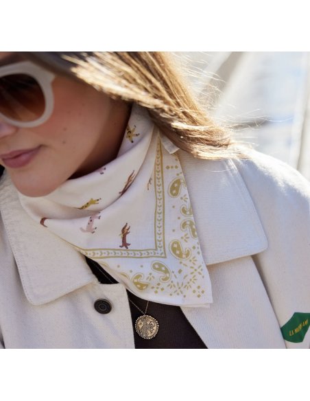 Pensé pour les kids, mais pas que : ce foulard 60 x 60 cm accompagne les enfants à l’école, à la plage ou en balade, et se détourne aussi en bandana dans les cheveux, autour du cou ou accroché à un sac.
