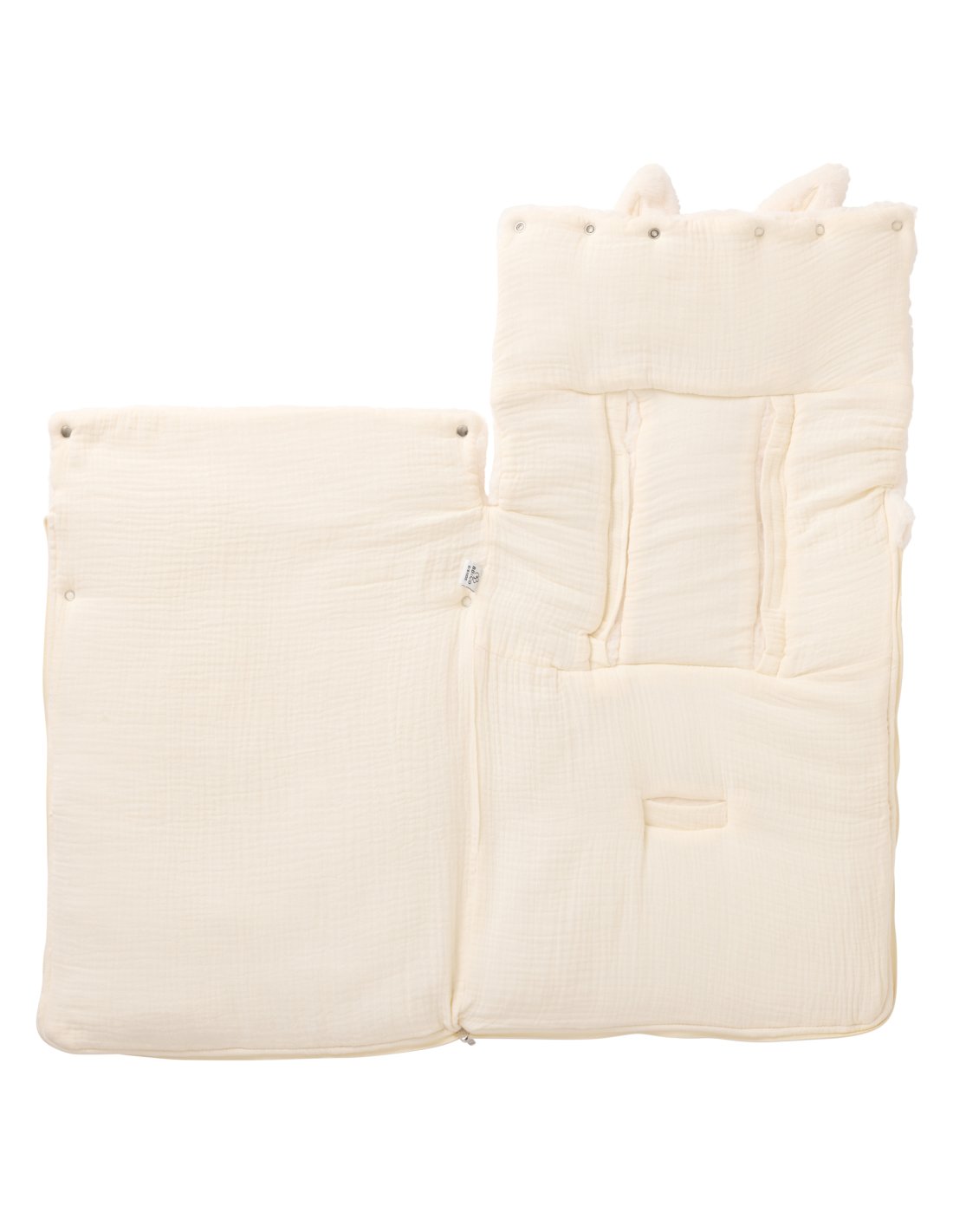 Un nid d’ange en fausse fourrure très douce pour garder bébé bien au chaud ! Entièrement ouatiné et doublé de gaze de coton, cet adorable nid d’ange est entièrement zippé et comporte des fentes universelles à scratch pour le passage des sangles (siège auto ou poussette). Avec ses oreilles de lapin, ce nid d’ange va rendre bébé encore plus craquant !