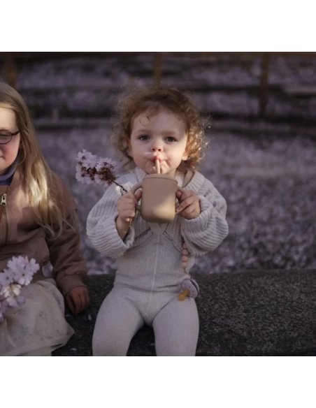 La tasse est fabriquée en silicone de qualité alimentaire à 100 % et est équipée d'un couvercle amovible et d'une paille douce pour les gencives et les premières dents de bébé.