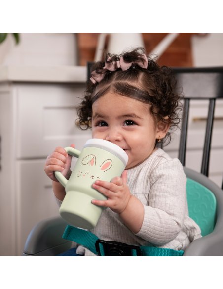 Ma première tasse en silicone d'Infantino est parfaite pour épancher la soif de bébé! Cette tasse de 25.5cl permet à bébé de boire comme un grand. La tasse est légère, 100% silicone et parfaitement préhensible. La paille en deux parties est dotée d'une valve pour prévenir toute fuite, même lorsque bébé retourne la tasse, et assurer un passage maîtrisé du liquide. Le bout souple en silicone de la paille ne peut pas se retirer et est donc tout à fait adaptée pour les tout-petits. La tasse a une poignée très pratique et s'insère dans la plupart des porte-tasses afin que bébé puisse l'emmener dans ses déplassements. La tasse est idéale pour les boissons des tout-petits: eau, jus de fruits et lait (même chaud). Son nettoyage est extrêmement facile, il suffit d'ouvrir le couvercle et de placer la tasse au lave-vaisselle. Avec sa première tasse en silicone Infantino, bébé aura la même tasse que maman et restera hydraté toute la journée!