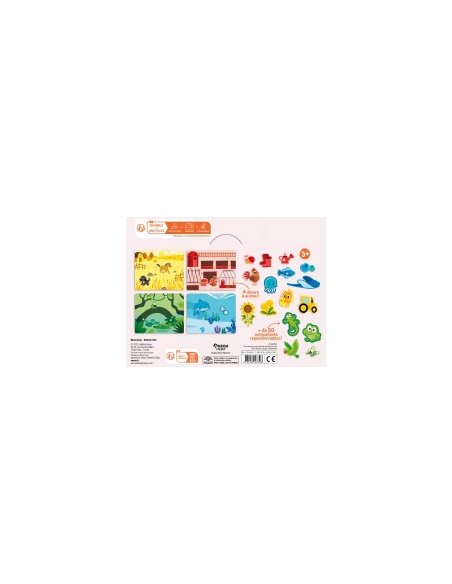 La pochette propose 4 décors à animer à l’aide de 50 autocollants en relief, faciles à manipuler. Les autocollants sont repositionnables pour faire et refaire l’activité à l’infini !