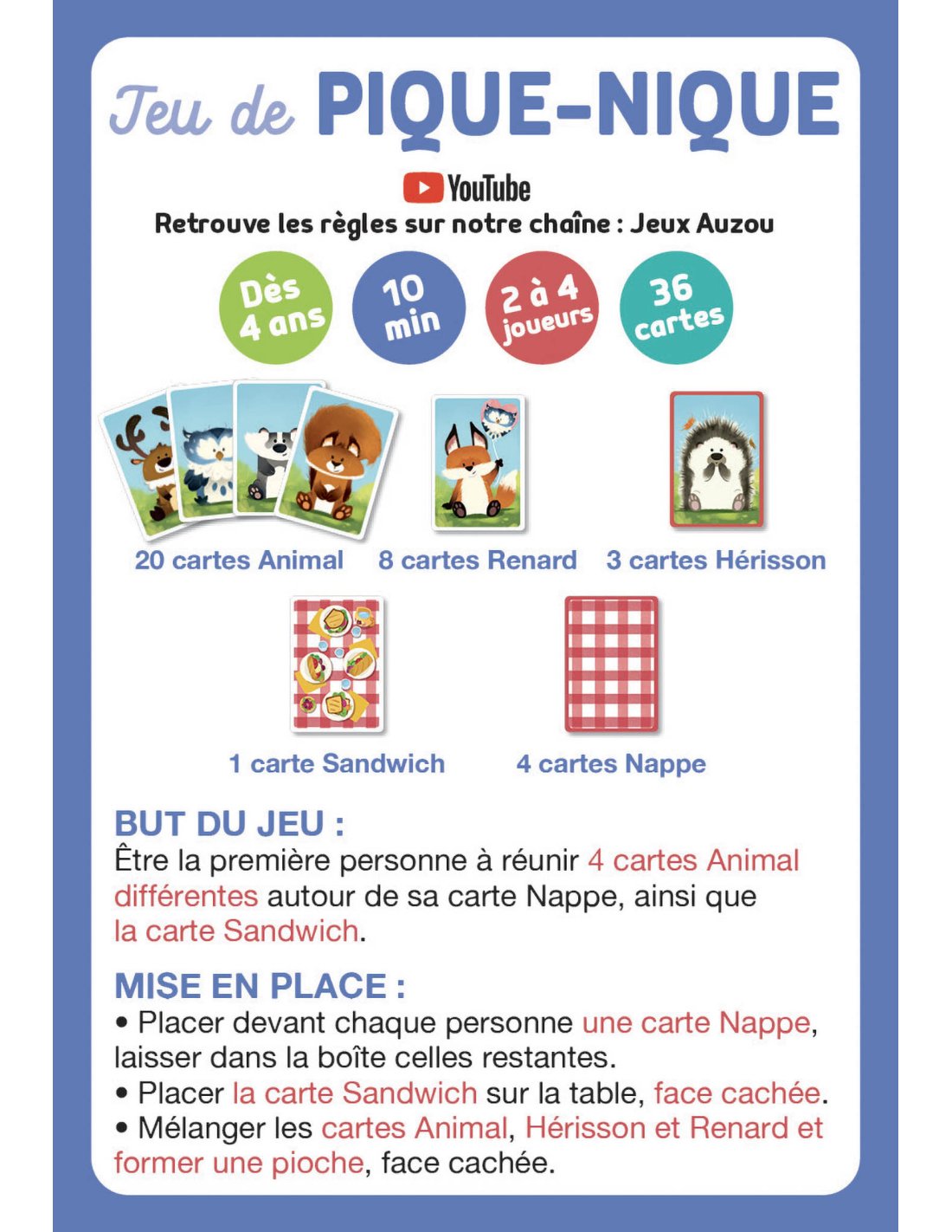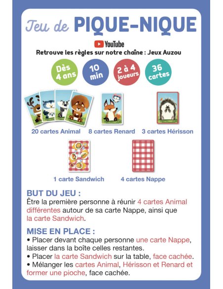 C’est l’heure du pique-nique pour les animaux de la forêt. Regroupe-les autour de la nappe avant les autres pour qu’ils puissent savourer leur sandwich !