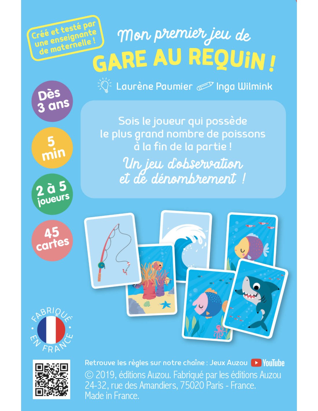 Découvrez le jeu de cartes Gare au requin de la marque Auzou. Ce jeu a été spécialement conçu pour les enfants à partir de 3 ans. Pour des jeux en famille ou entre amis, ces cartes sont spécialement créer pour développer les connaissances de votre enfant.