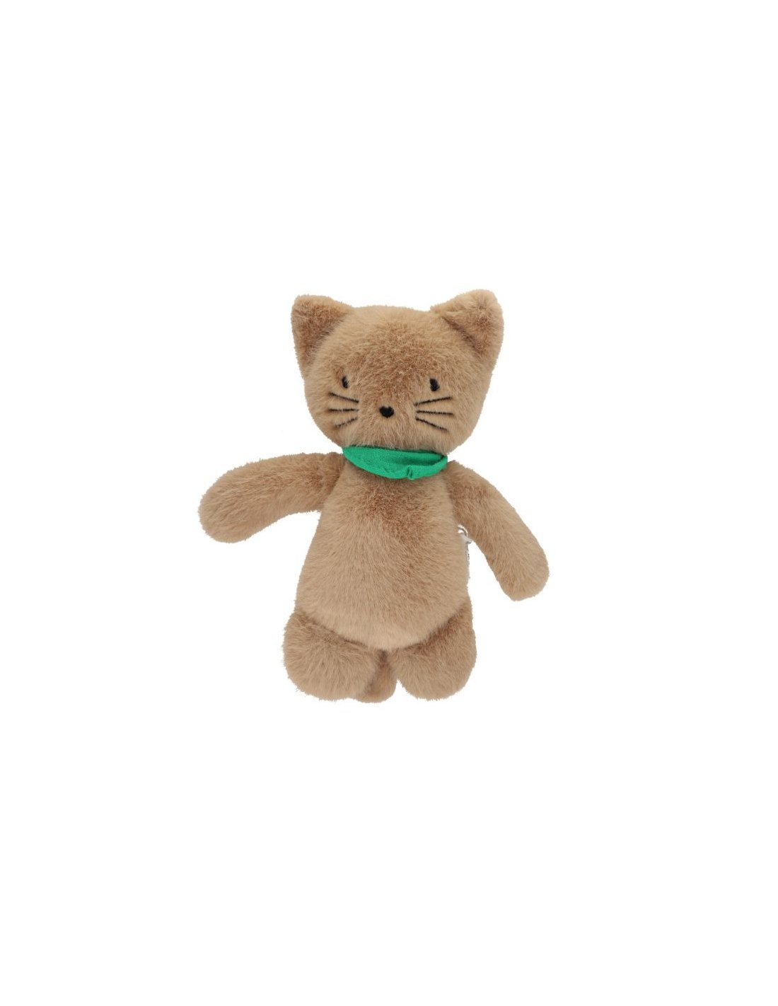 Une peluche chat marron et bandana vert, un compagnon trop mignon !Ce beau petit chaton va faire fondre les cœurs ! Avec son pelage marron tout doux et ses jolies finitions, cette peluche chat est un concentré de tendresse et de style. Son petit plus ? Un bandana vert noué autour du cou, pour une touche de fantaisie qu’on adore !