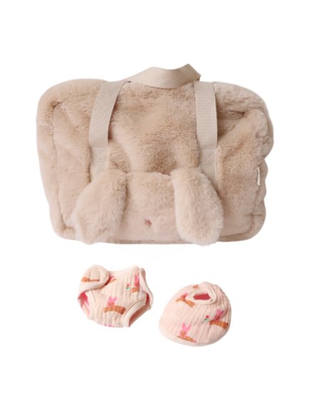 Le set à langer pour poupée lapin, pour imiter les gestes des grands avec style et tendresse ! Facile à utiliser, il permet de reproduire les moments du quotidien avec réalisme tout en stimulant l’imagination et la créativité. Son format petit sac à langer et sa matière souple et toute douce assure des heures de jeux et en fait un accessoire poupée pratique pour les petits.