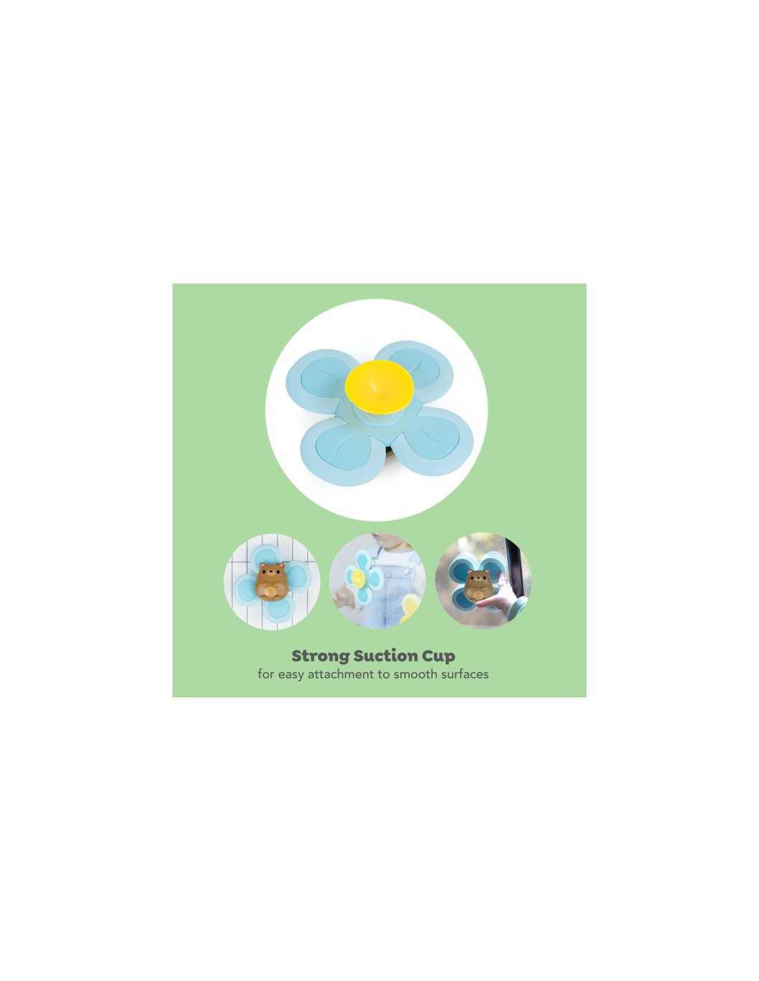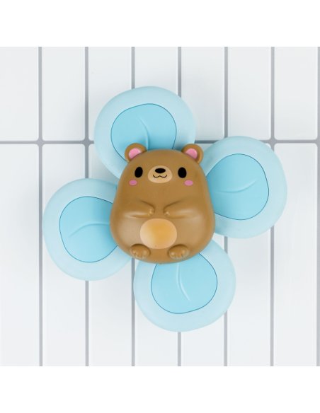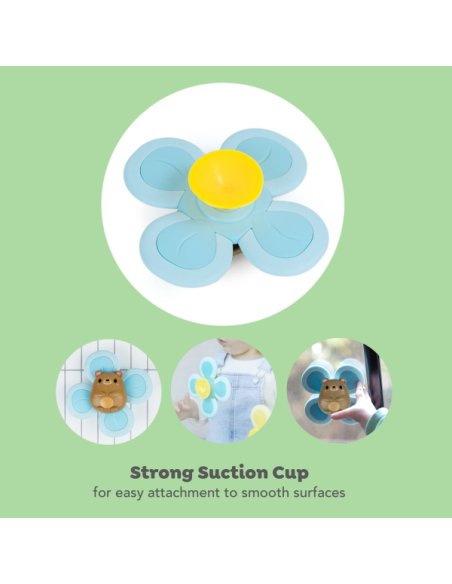 Conçu pour stimuler la motricité fine, l'éveil sensoriel et l'apprentissage de la relation de cause à effet, ce magnifique jouet lapin est doté d'une toupie à quatre pales qui ravira les sens des petits tigres. Sa ventouse puissante permet une fixation facile sur toute surface lisse (baignoire, carrelage, chaise haute, miroir, réfrigérateur, vitre de voiture, etc.).