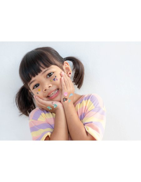 Une pochette qui propose : des strass de visage, des tattoos et des boucles d'oreilles autocollantes qui brillent !