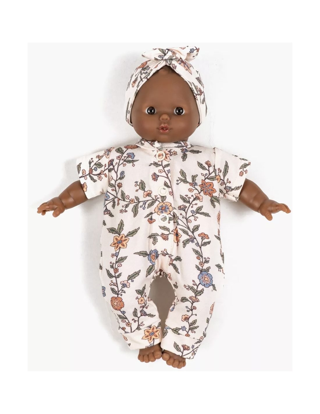 Combinaison Lili et son headband à noeud rond en jersey pour poupées Minikane Babies 28cm.