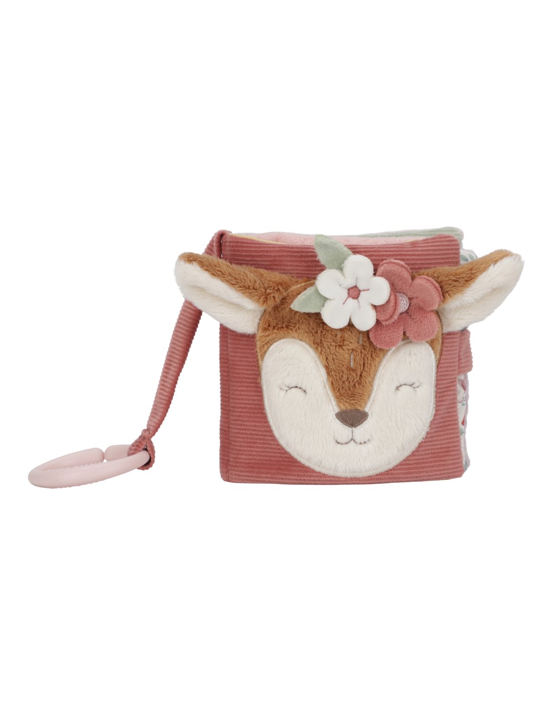 Ce livre d'activités est composé beaucoup de matériaux et d'activités différentes à explorer, comme un miroir, un hochet et des jouets friables. Le livret souple comporte également différentes étiquettes qui ont un toucher agréable.