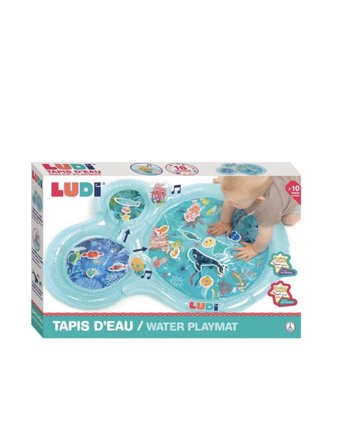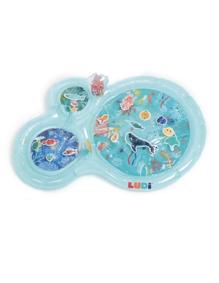 Ce maxi tapis d’eau bleu vert Ludi est la promesse de moments de rires et de partage à l’intérieur comme à l’extérieur ! Facile à gonfler et solide grâce à ses finitions, il se remplit avec l’eau du robinet. Une fois prêt, votre enfant presse le maxi tapis pour faire circuler l’eau entre les trois bassins ou essaie d’attraper les jouets flottants. Un pouet pouet et un grelot à presser participent également à son éveil auditif. Marre de jouer ? Il s’allonge sur ce maxi tapis d’eau Ludi pour se faire bercer et masser. Après l’effort, le réconfort !