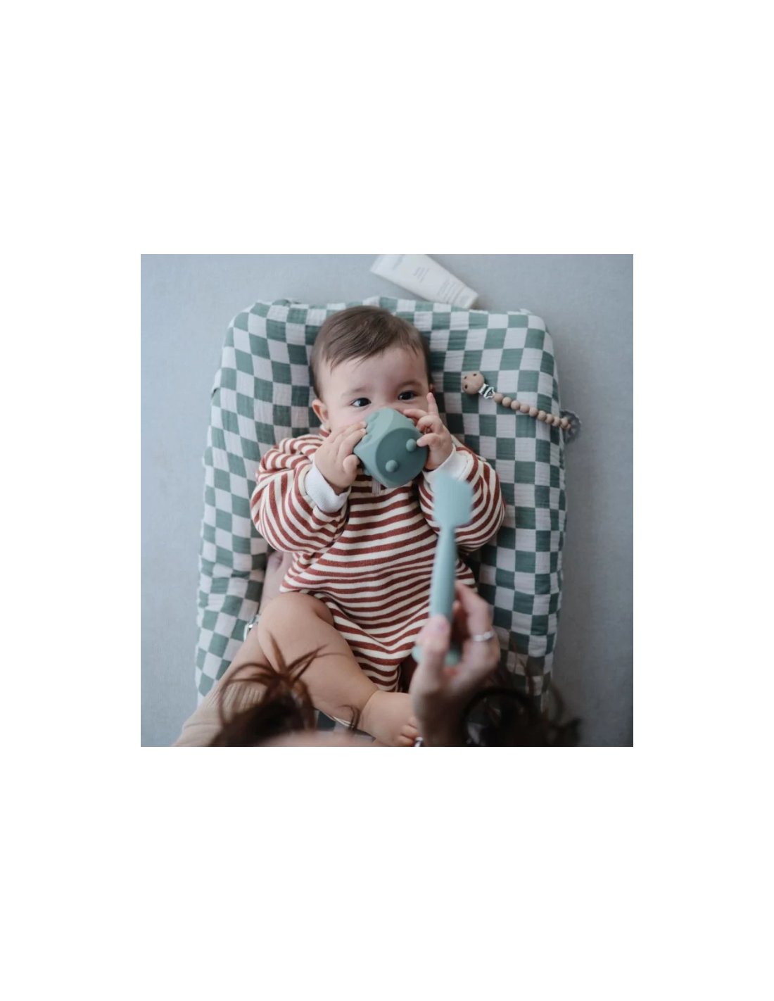 Il est fabriqué en silicone alimentaire, dans des couleurs douces et avec un design simple.
