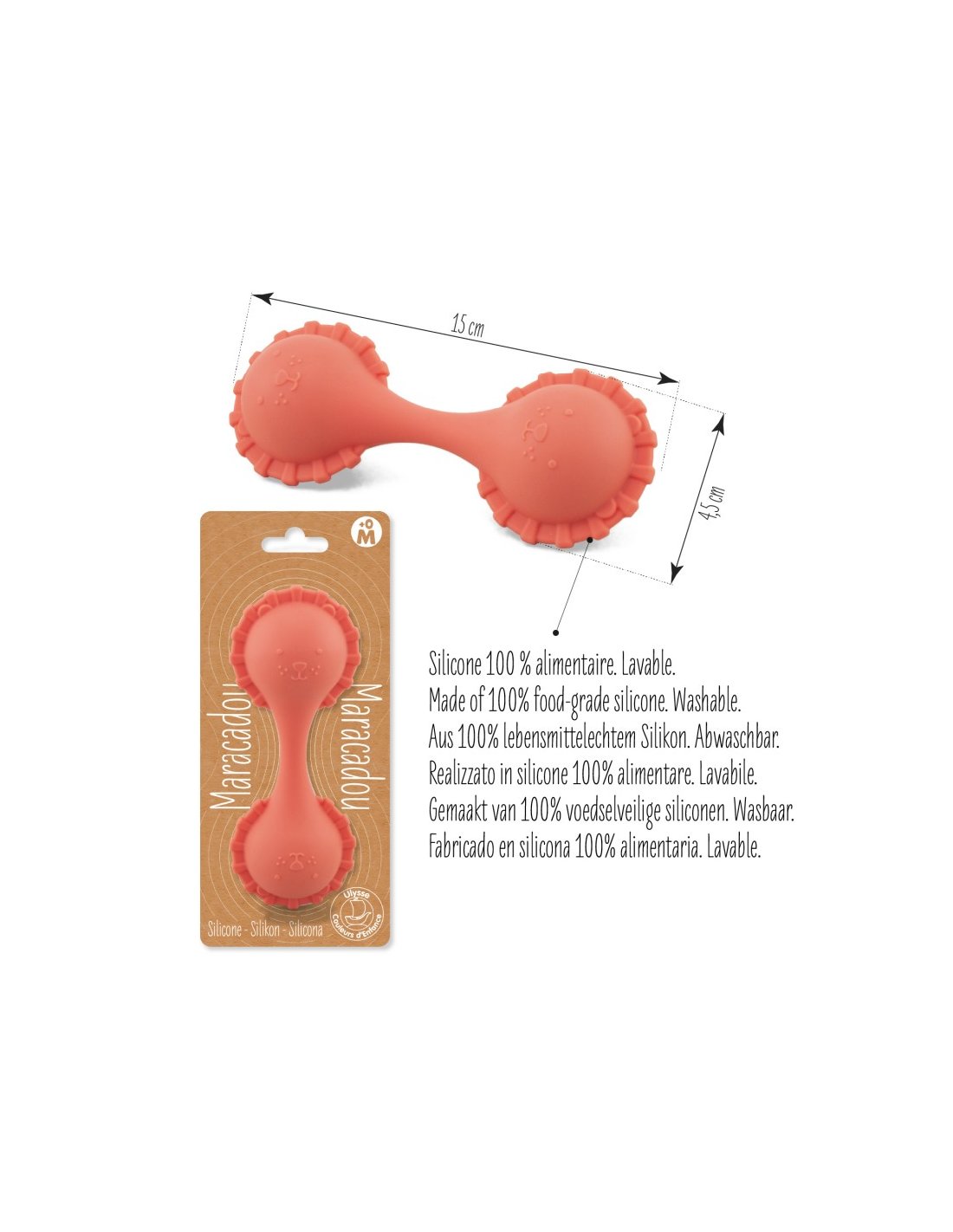 - Maraca en silicone ultra-douce, avec deux têtes de lion ludiques