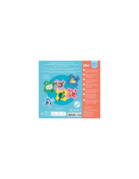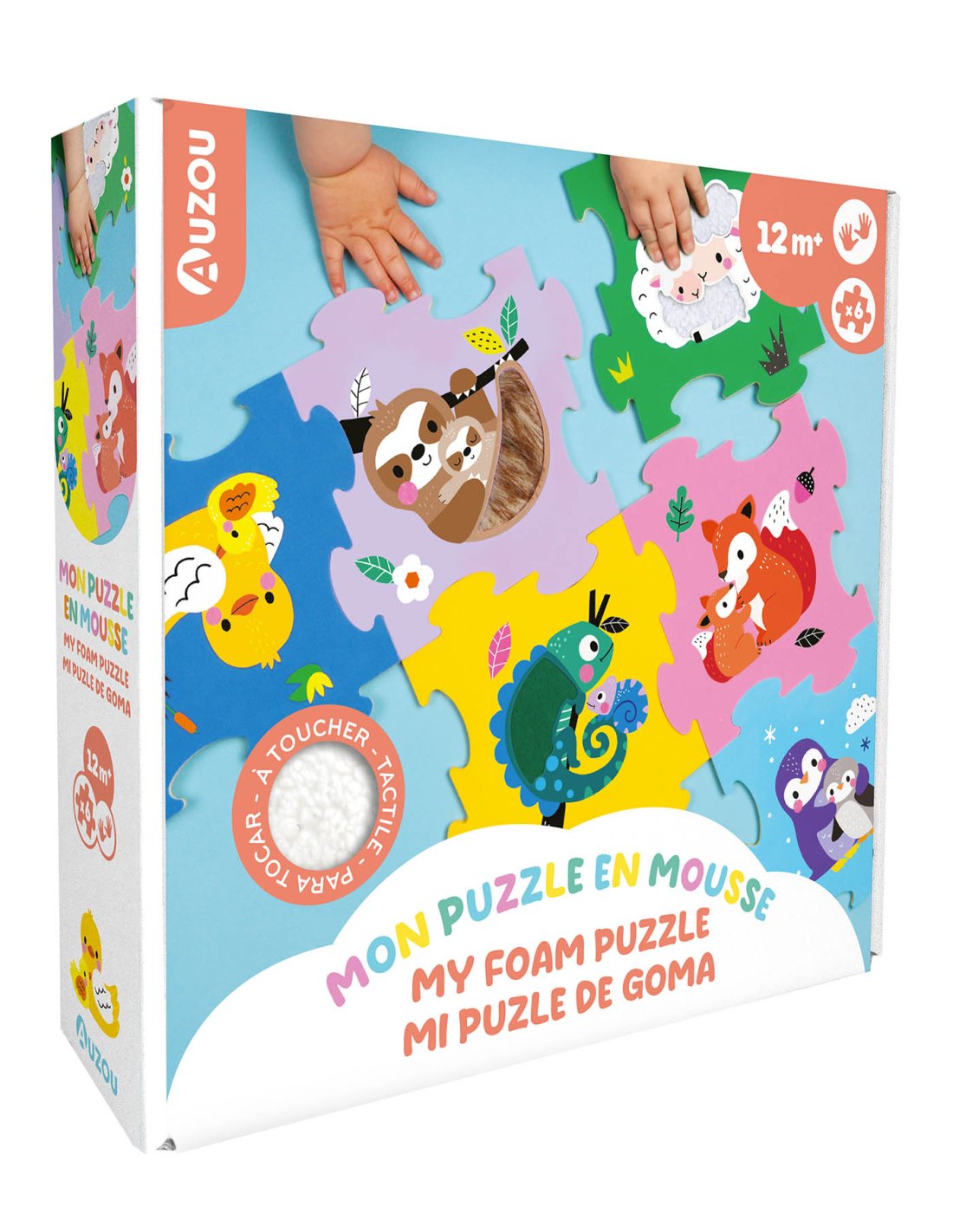 Le puzzle en mousse propose 3 belles matières à toucher pour développer l’éveil sensoriel du tout-petit. Ses 6 grandes pièces colorés avec d'adorables animaux peuvent s’assembler comme l’enfant le souhaite, pour un puzzle refaisable à l’infini !