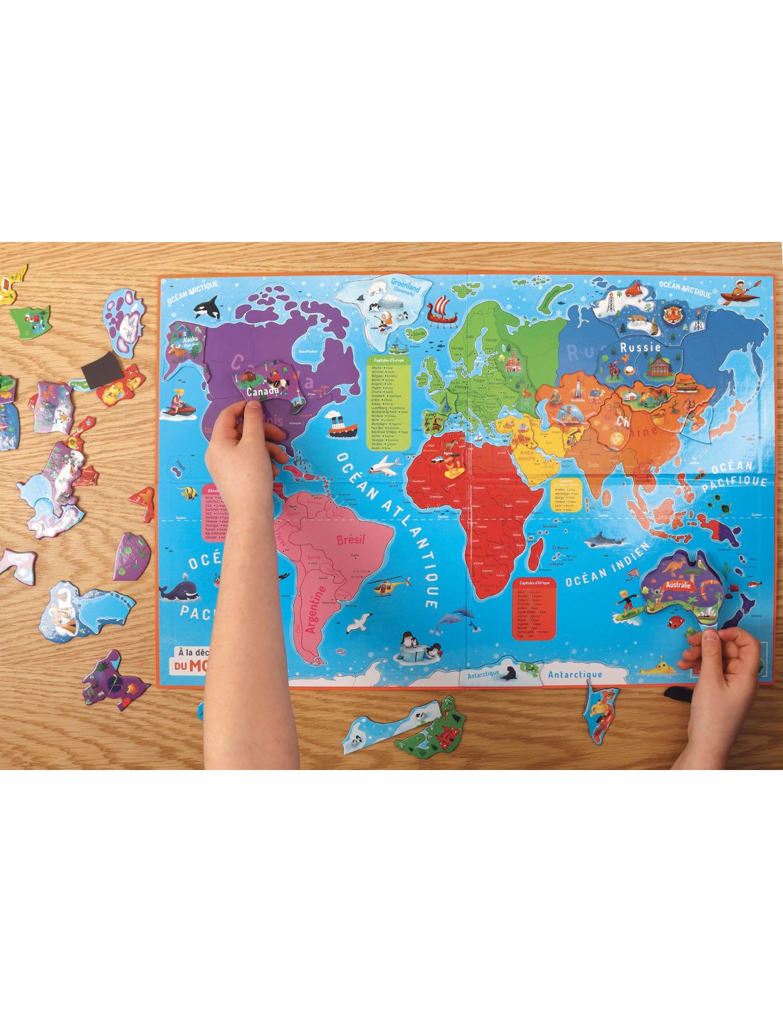 sur les continents et les pays du monde, ainsi que + de 80 aimants à replacer sur un grand plateau aimanté.