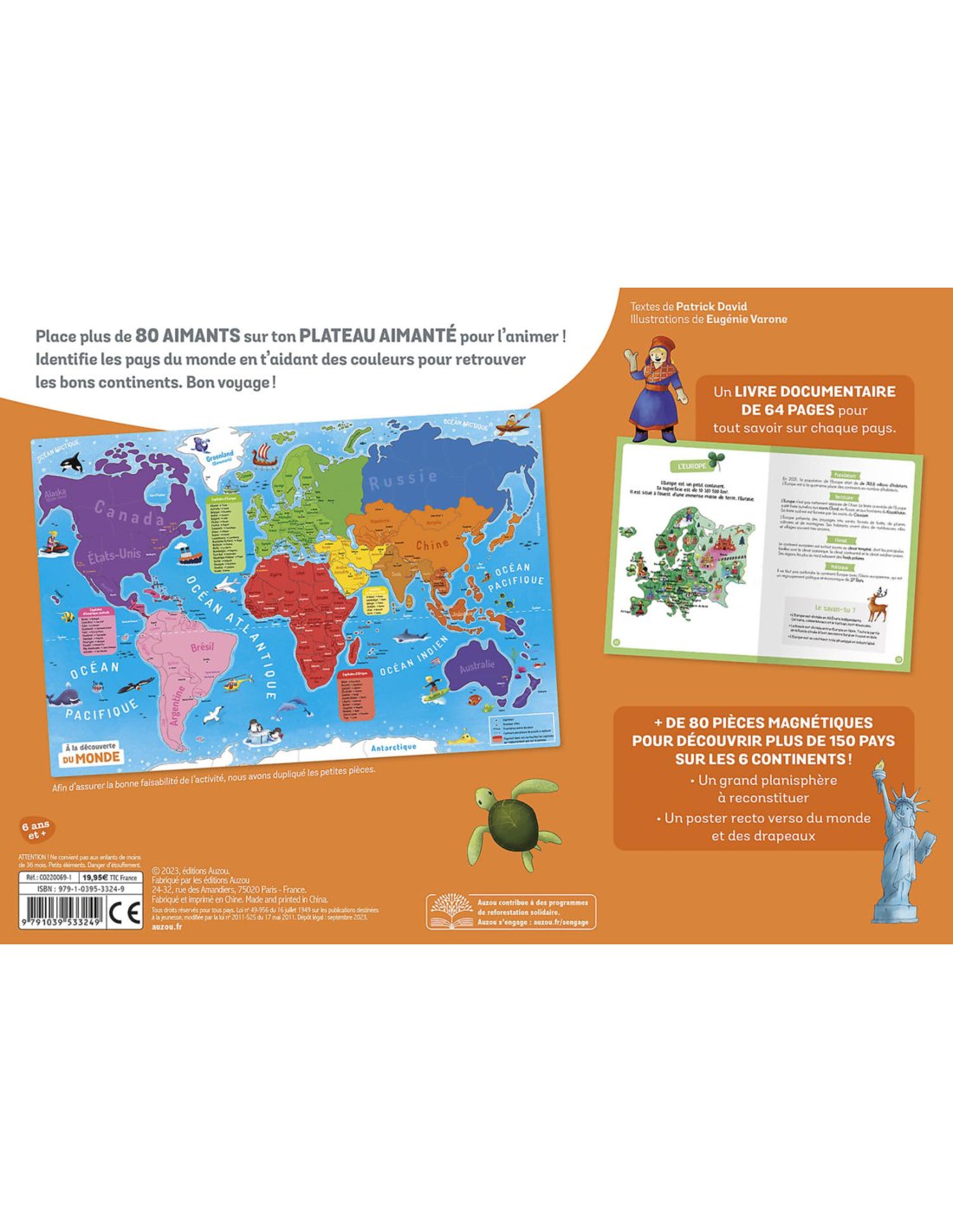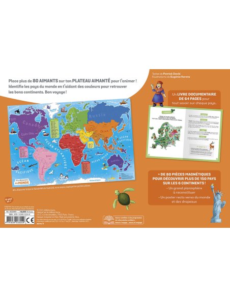 sur les continents et les pays du monde, ainsi que + de 80 aimants à replacer sur un grand plateau aimanté