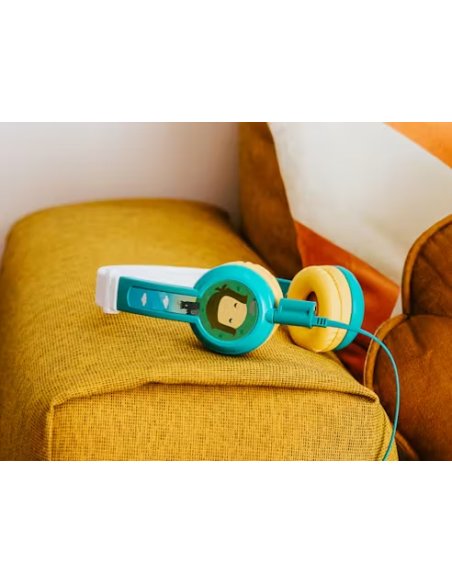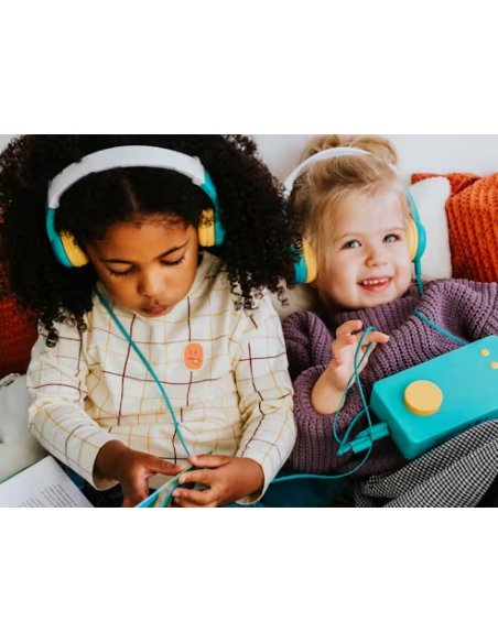 Avec ses couleurs pétillantes, le casque audio Octave est parfaitement assorti à Ma Fabrique à Histoires et FLAM et respecte les oreilles de vos enfants !