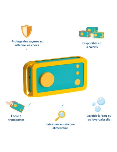 La Coque Odile est fabriquée en silicone élastique, ce qui permet d’absorber les chocs. Un vrai cocon protecteur pour Ma Fabrique à Histoires.