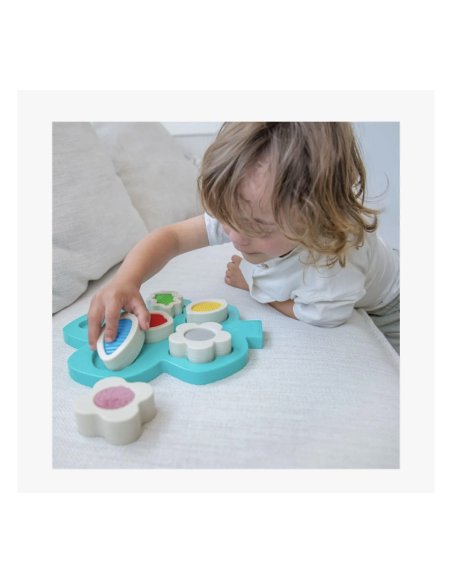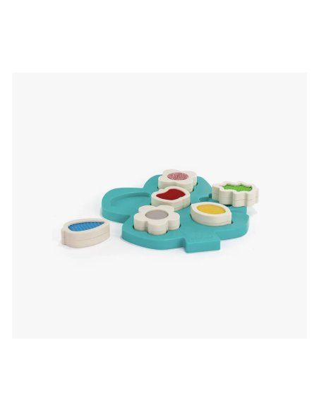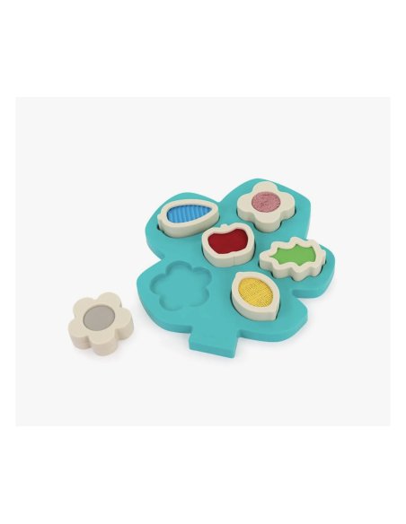 La curiosité des bébés sera éveillée grâce à ses couleurs contrastées et ses 6 pièces de textures différentes en forme de feuilles, de fruits et de fleurs. Un jeu dans lequel ils apprendront à associer chaque forme à son emplacement.