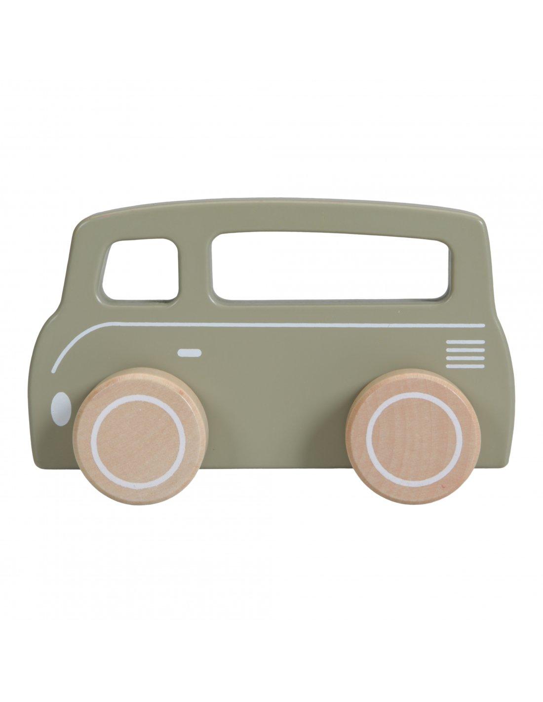 Cette petite camionnette en bois Little Dutch de couleur olive roule gaiement grâce à ses roues en bois solides. Elle a deux autres amis : une voiture et une voiture de sport. Très sympa comme accessoire dans une chambre de bébé ou d’enfant.