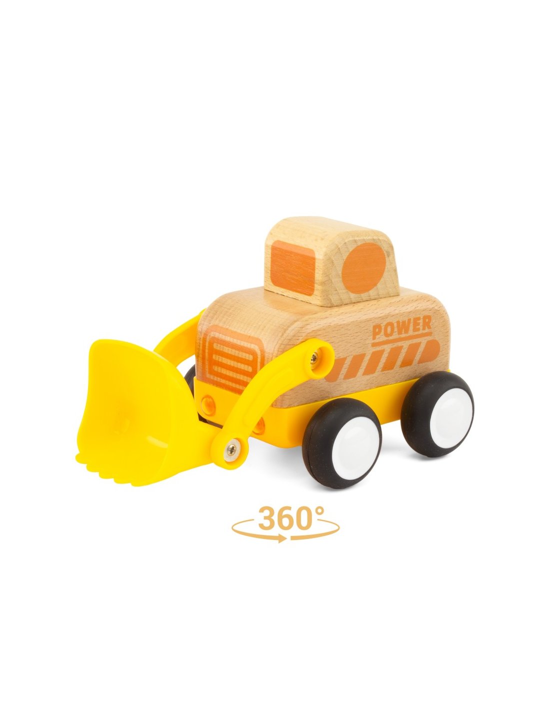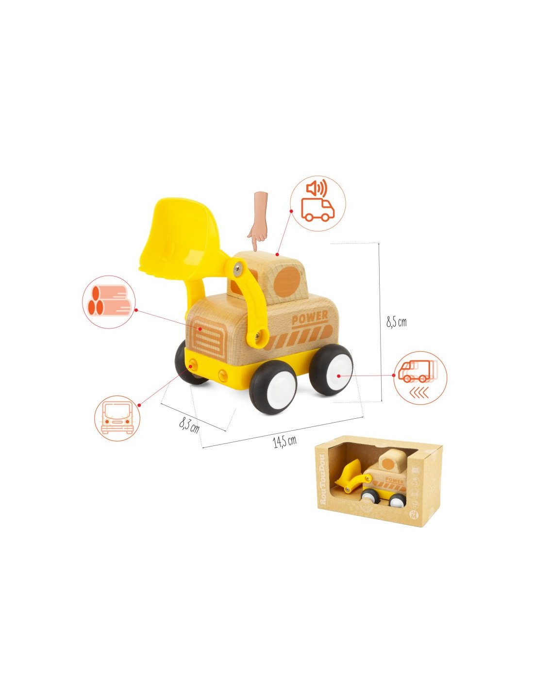 ⦁ Interactivité : La chargeuse est mobile, et en appuyant sur le jouet, les phares s'allument et 3 sons différents de chantier se déclenchent.