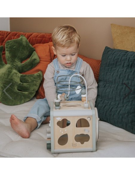 Le cube d'activités 5 en 1 comprend un trieur de formes, des engrenages, un labyrinthe de pistes, un xylophone et un labyrinthe de perles pour garder les enfants engagés. Le labyrinthe de perles se détache du cube pour devenir deux jouets distincts. Le jouet multifonctionnel offre un mouvement continu fascinant pour beaucoup de plaisir dynamique, stimule la créativité et la pensée logique, la motricité fine et la culture des compétences cognitives des formes, des couleurs et des compétences de comptage et d'association.