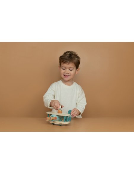Prêt pour le départ ! Tu es le pilote aux commandes : démarre ton moteur, tourne l'hélice et partons à l'aventure ! Cet avion jouet est conçu pour le jeu interactif et imaginatif. Les roues roulent en douceur et font glisser facilement votre enfant sur le sol pour explorer de nouveaux territoires. La poupée pilote est adaptée aux autres sets de jeu de la maison de poupée, tels que la caravane et le bus scolaire. L'imagination de votre enfant s'envole très loin avec ce joli avion jouet en bois.